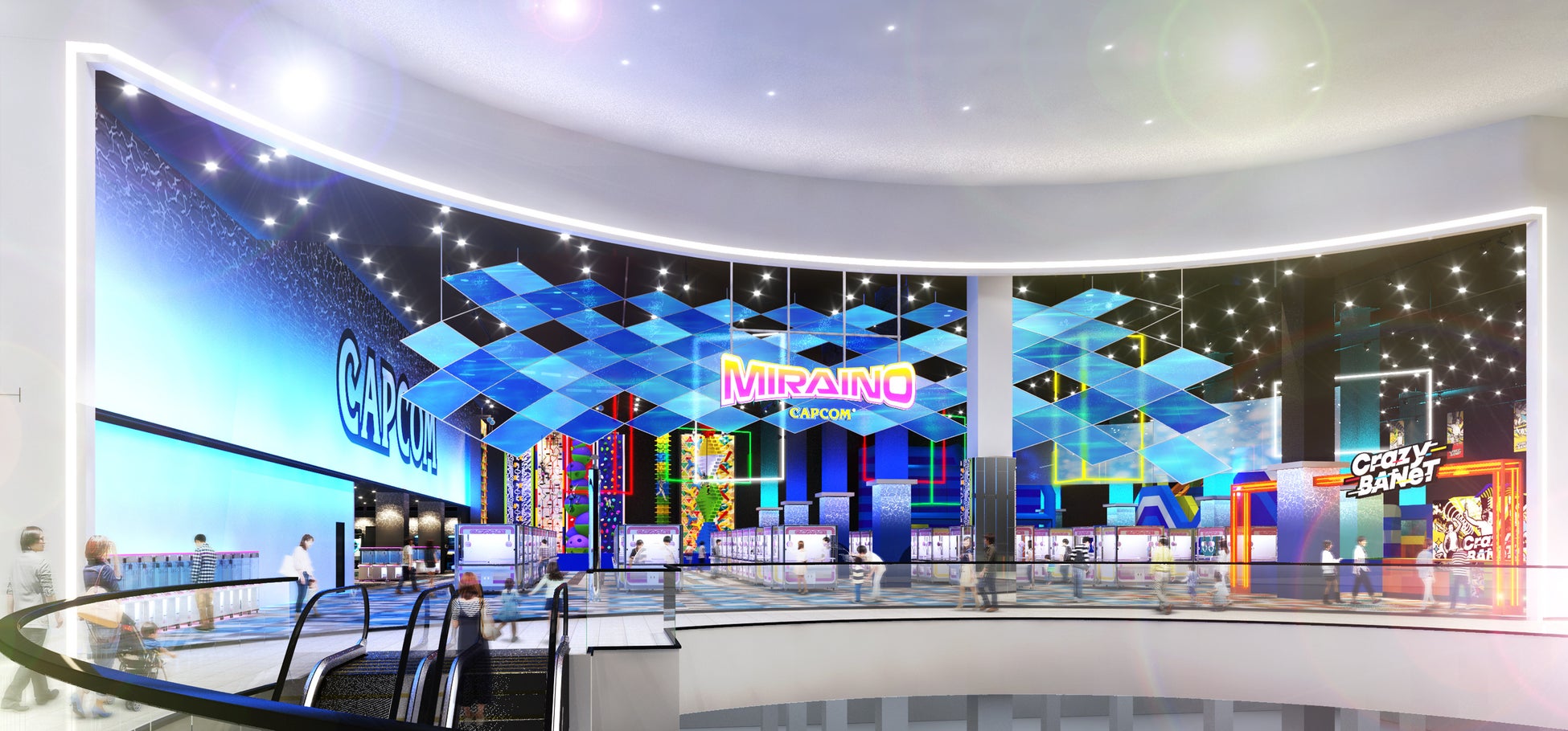 こちらの「MIRAINO イオンモール土岐店」は、8mの高さを誇るクライミングウォールや、超大型インフレータブルなどを有したアクティブエンターテインメントゾーン「Crazy BANeT(クレイジーバネット)」をはじめ、大人気キャラクターの大型ぬいぐるみなど多彩な景品を取り揃えた「アミューズメントゾーン」、総合キャラクターグッズ専門店「キャラカプ」、常時800台以上のカプセルトイを取り揃えた「カプセルラボ」など、お子様はもちろん、ご家族、恋人同士でも楽しめるコンテンツを各種取り揃え、皆様のご来店をお待ちしております。