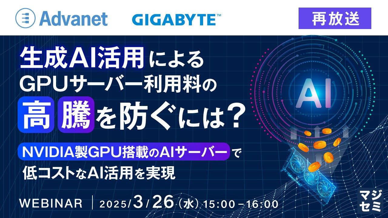 マジセミ株式会社は、大変好評をいただいた「【再放送】生成AI活用によるGPUサーバー利用料の高騰を防ぐには?」というテーマのウェビナーを再放送します。