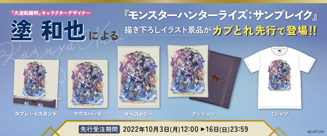 カプコンの『大逆転裁判』キャラクターデザイナー塗 和也による、『モンスターハンターライズ:サンブレイク』描き下ろしイラストグッズが登場!