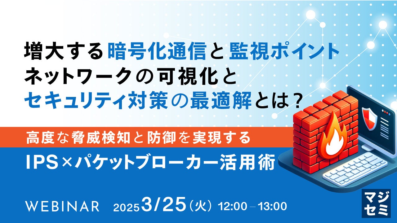 マジセミ株式会社は「増大する暗号化通信と監視ポイント、ネットワークの可視化とセキュリティ対策の最適解とは?」というテーマのウェビナーを開催します。