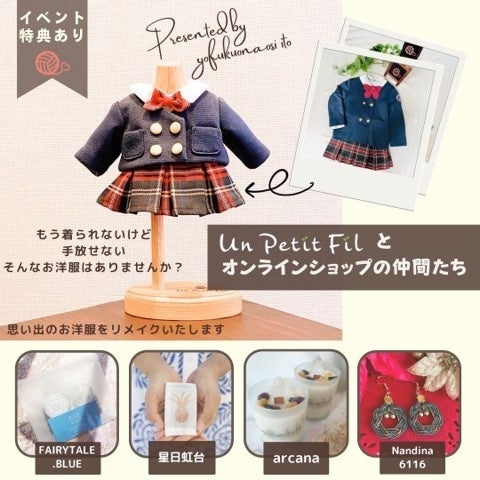 また、リメイク相談だけではなく、卒業・卒園ギフトにぴったりなグッズも展開します。「絲~Un Petit Fil(アンプチフィル)~」主催者が子育て合間に楽しんでいただける商品の4ショップもセレクトしました。