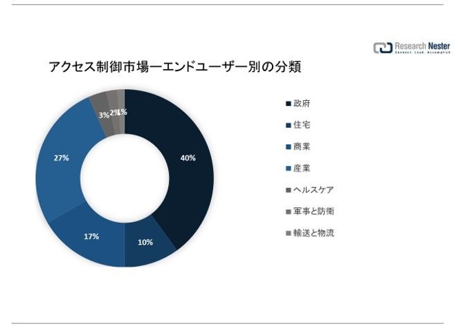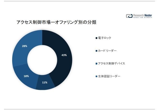 セキュリティとプライバシーに関する懸念ーアクセス制御システムに何らかの障害が発生すると、多数のサイバー攻撃やテロ攻撃につながる可能性があります。 さらに、パスワードが漏洩した場合、デバイスのすべての機密データが漏洩する可能性があります。 電子ドアのパスコードが侵害された場合、さらに悪化する可能性があります。セキュリティに対するこれらのリスクは、市場の成長を妨げる可能性があります。