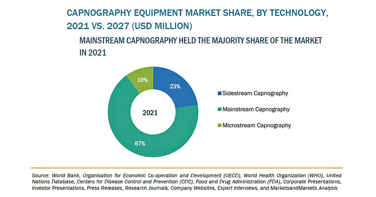 カプノグラフィー装置は、従来、深い鎮静や麻酔をかけた患者に対する心臓外科手術に使用されてきました。しかし、外傷や救急などの重要な用途での患者が増加していることから、ポータブル/POC型のカプノグラフィー装置の需要が高まると予想され、その開発にますます力が注がれています。