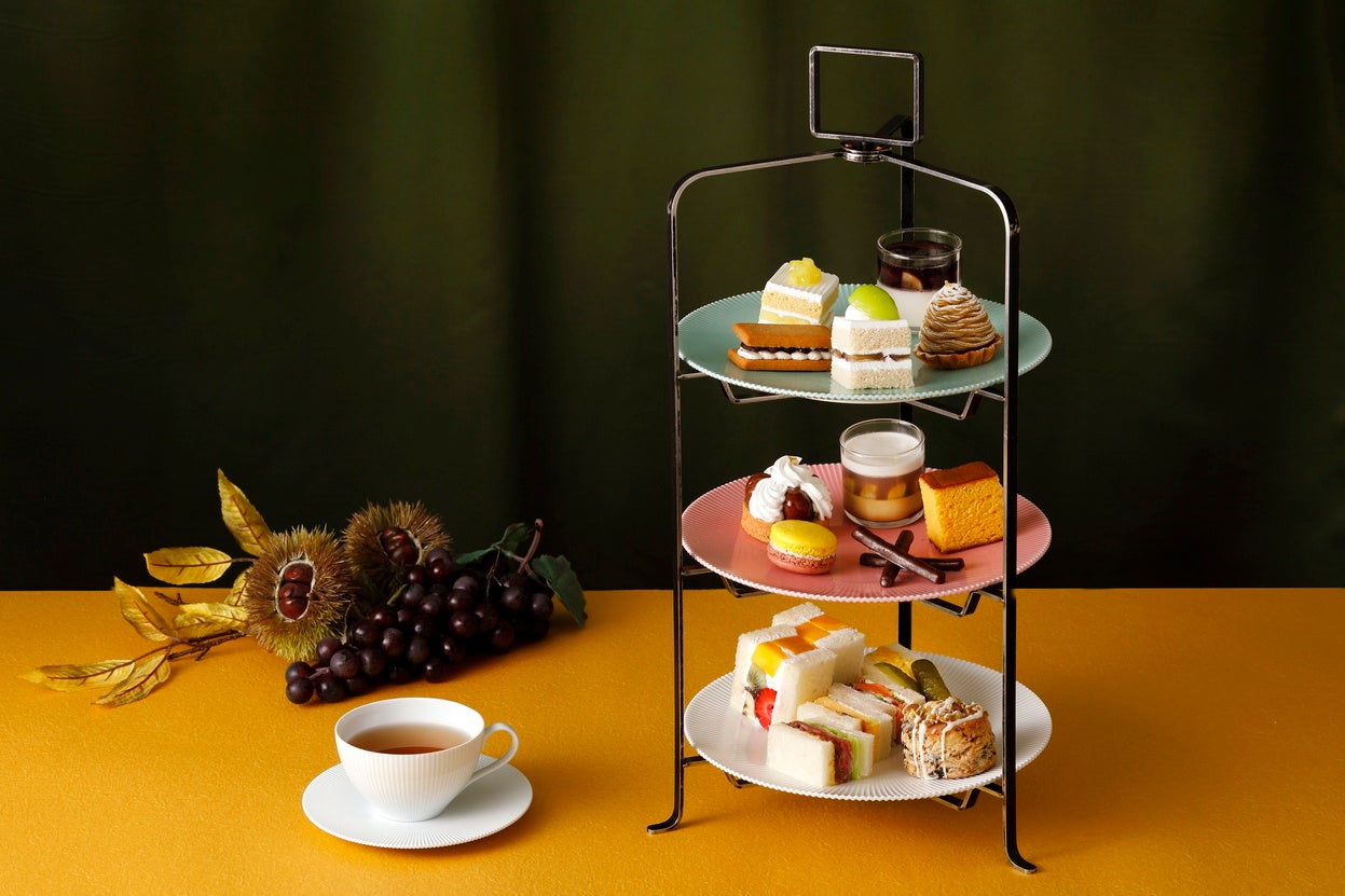 ホテルニューオータニ大阪では、最上階のスカイラウンジ「フォーシーズンズ」にて、旬を迎えた栗とぶどうを使用したスイーツや、「パティスリーSATSUKI」の“スーパーシリーズ”を一度に愉しめる『新アフタヌーンティーセット ~栗とぶどう~』 を、2025年9月1日(月)~11月30日(日)までの期間限定で販売します。