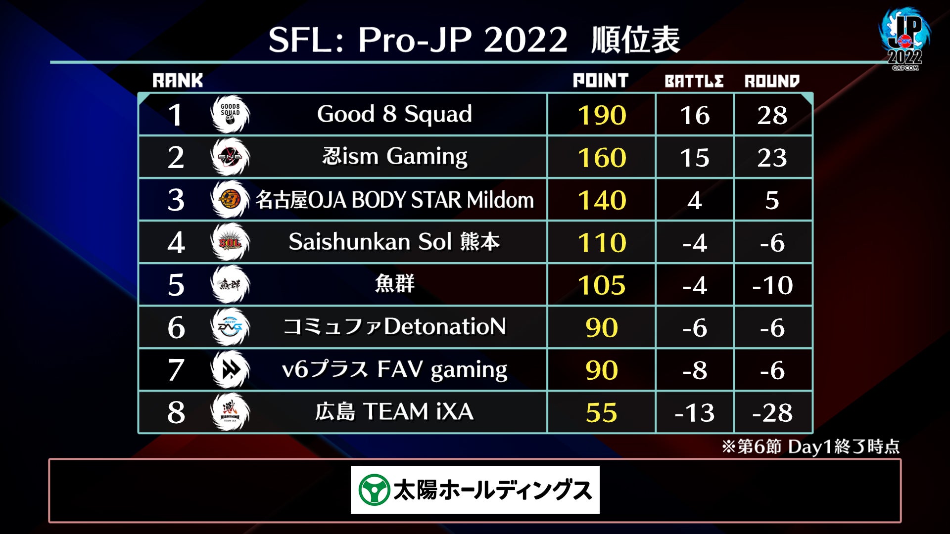先週、10月14日(金)に行われた「ストリートファイターリーグ: Pro-JP 2022」第6節Day1の試合速報をお知らせいたします。