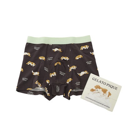 どこでもスヤスヤと眠る、安心しきった子犬たちの姿を描いた総柄プリントが印象的なボクサーパンツ。落ち着いたカラーリングで、大人の遊び心をさりげなく演出してくれるアイテムです。
