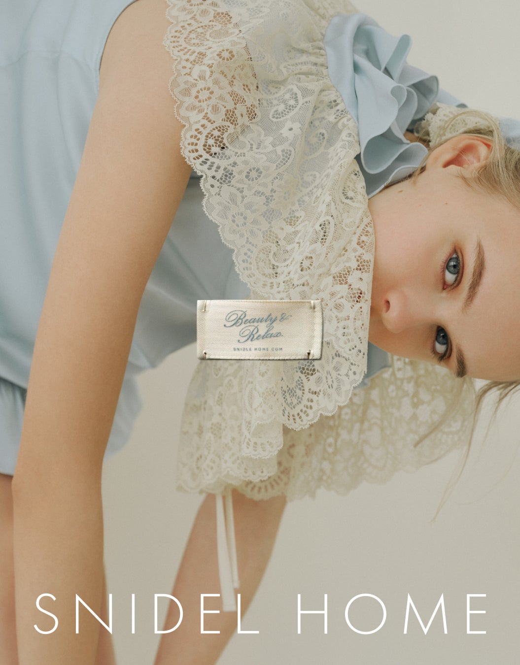 2005年にスタートしたレディースブランド「SNIDEL(スナイデル)」から、おうちの中のファッション・ライフスタイルを提案するブランドが誕生しました。BEAUTY HOME DRESSをコンセプトに、美しさを追求。美しく見えるフォルムやデザインはもちろんのこと、着ているだけで美しくなるような美容成分を生地に施しました。