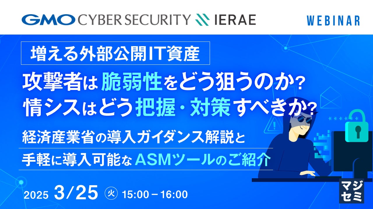 マジセミ株式会社は「サイバー攻撃に狙われる「アタックサーフェース」」というテーマのウェビナーを開催します。