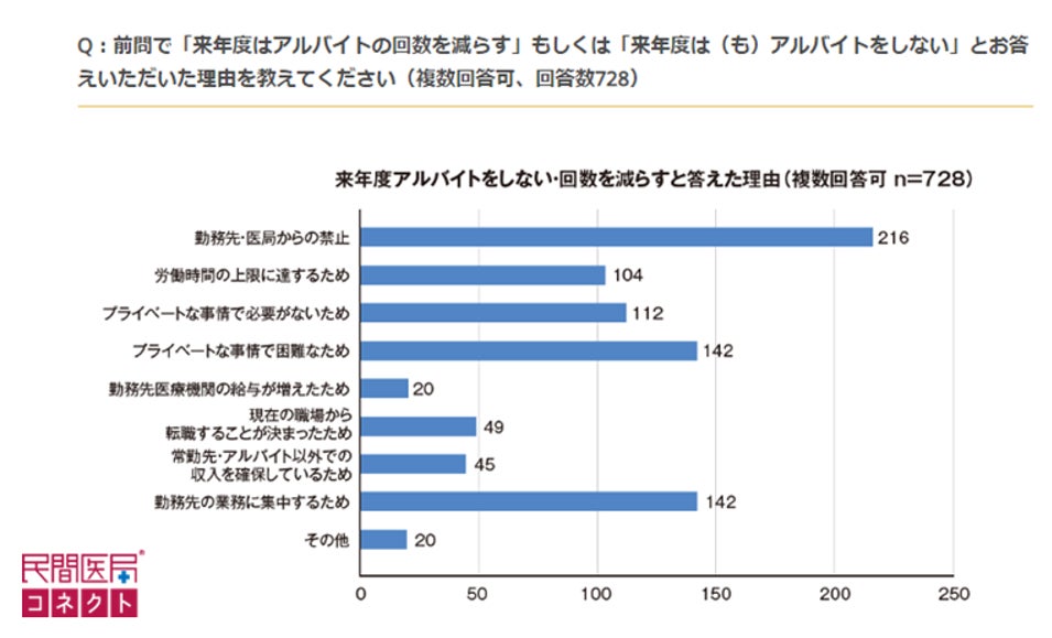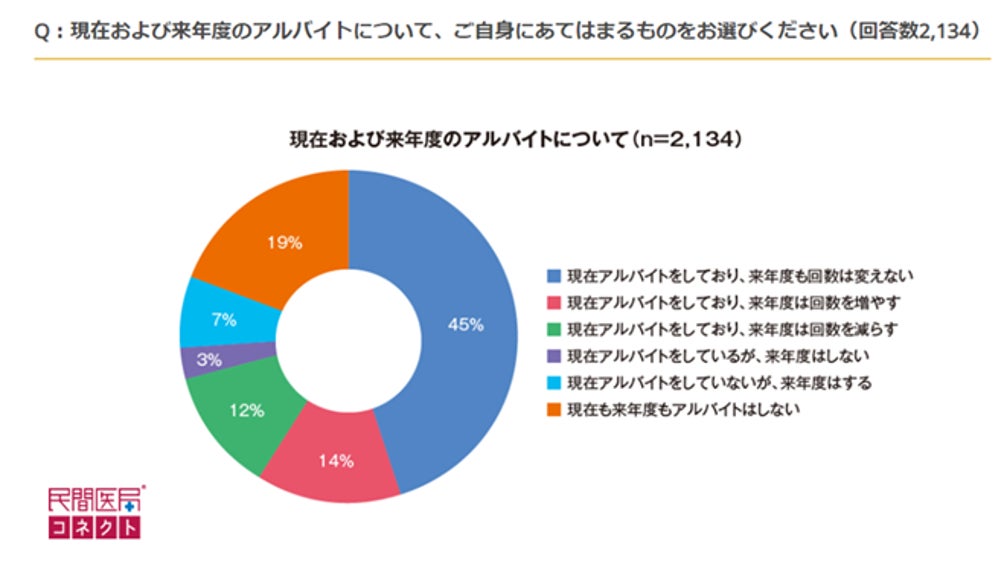 一方、「現在アルバイトをしており、来年度は回数を増やす」と回答した医師は14%で「現在アルバイトをしており、来年度は回数を減らす」よりも多い結果となりました。