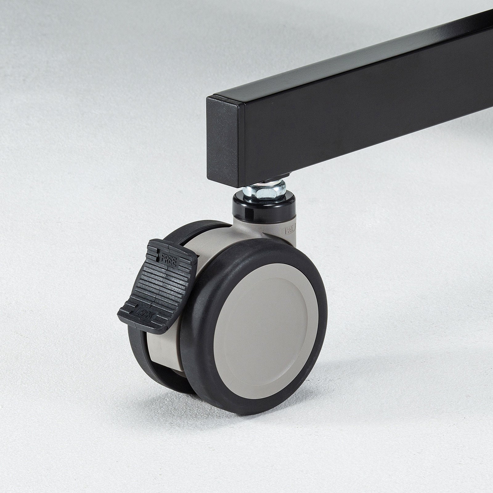 移動時に便利な取っ手付きです。キャスターは、前方にストッパーが付いた直径100mmの大型キャスターを採用しています。