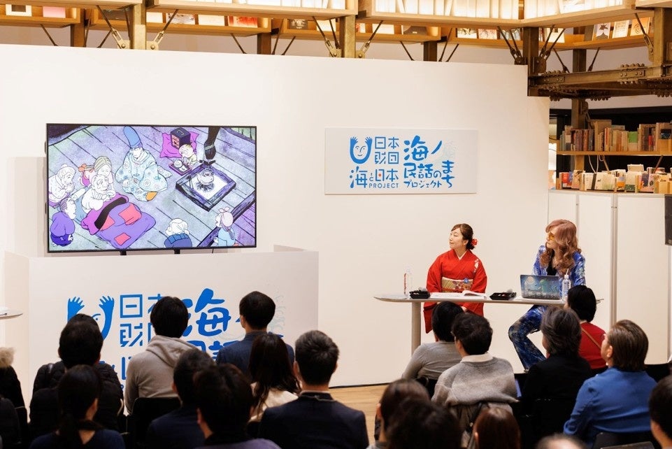 一般社団法人日本昔ばなし協会と日本財団が取り組む「海ノ民話のまちプロジェクト」は、2025年3月29日(土)、銀座 蔦屋書店(東京都中央区)にて、2024年度に制作した「海ノ民話アニメーション」の完成披露イベント特別トークショーを開催しました。