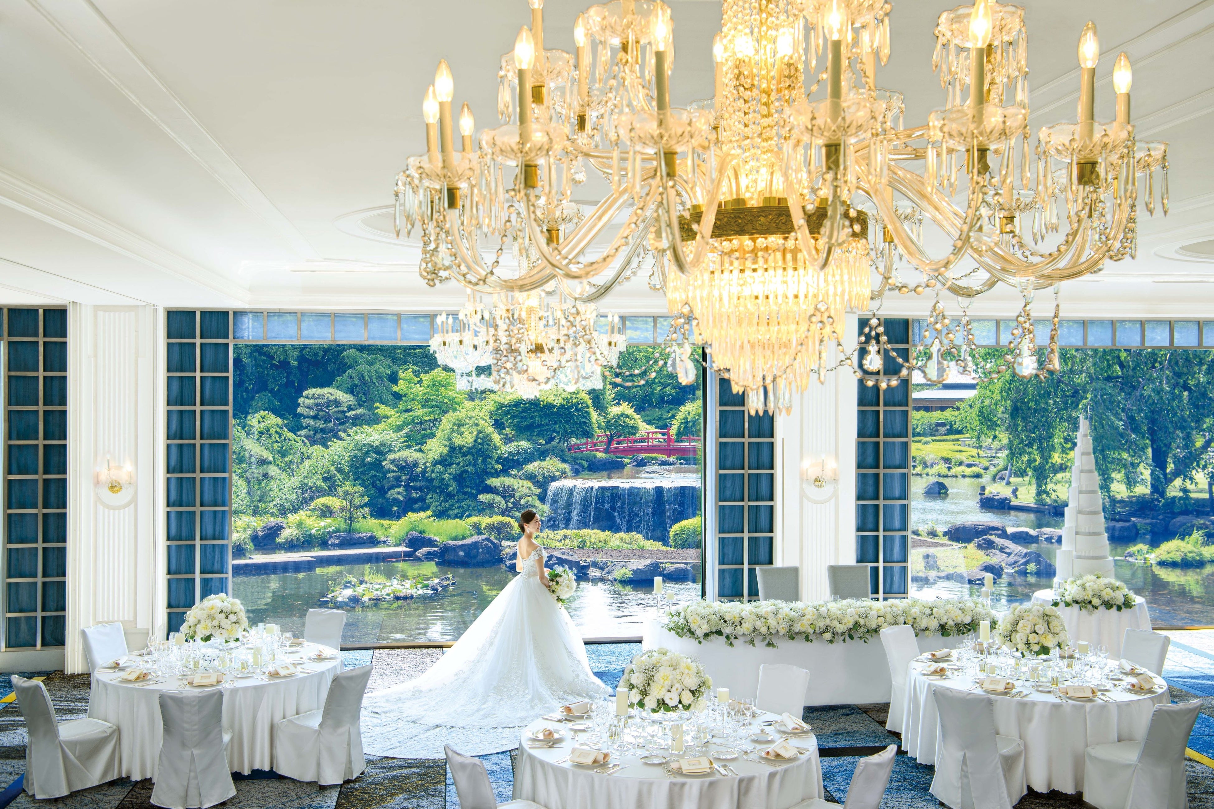 イタリアの邸宅をコンセプトに、フローリングやオープンキッチンを採用したモダンなバンケットルーム「PALAZZO OTANI」。目の前には400年の歴史を誇る日本庭園が広がり、“緑あふれる絶景”を祝宴の一部として味わえる魅力も。