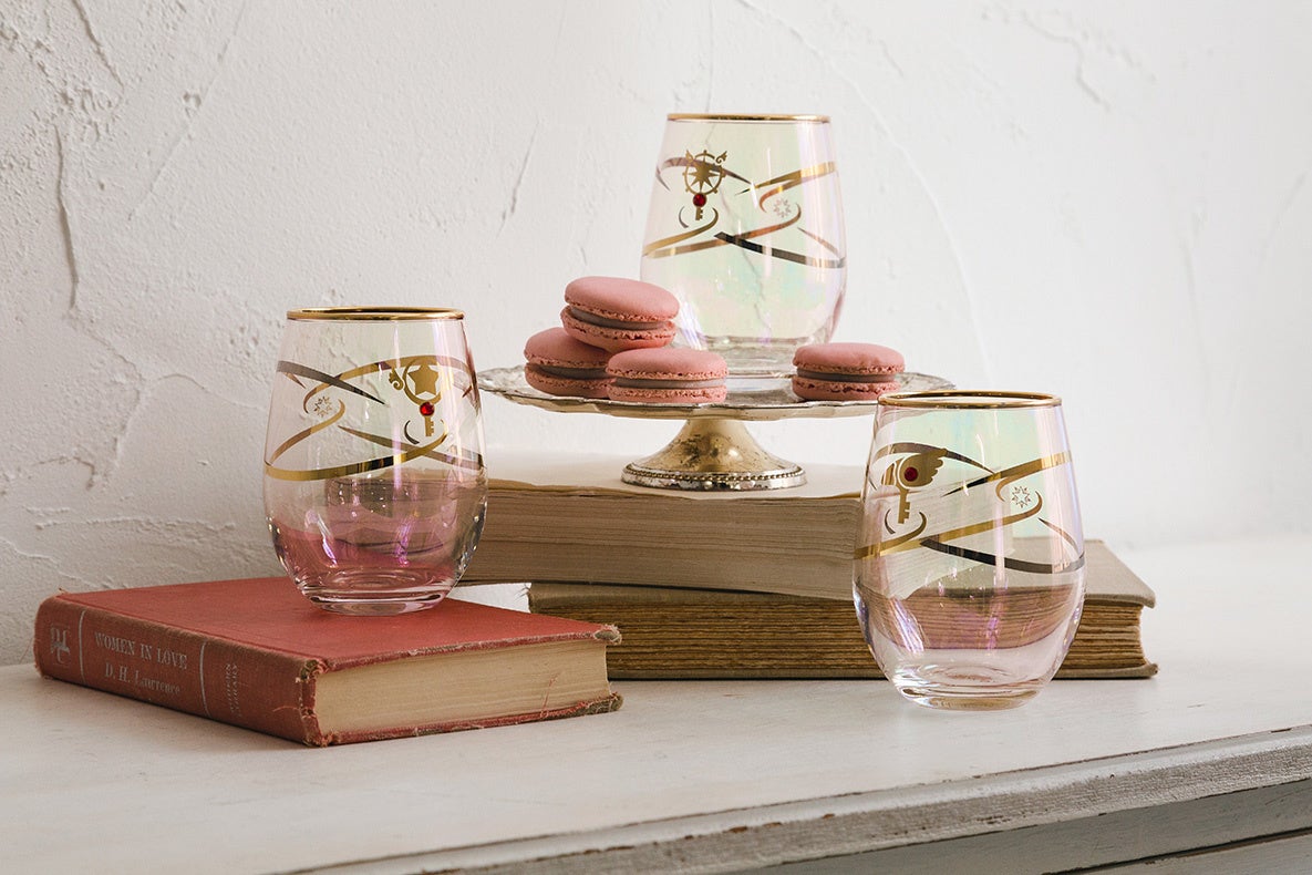 光の加減で色が変化し、さまざまな表情を見せてくれるオーロラガラスは夢と魔法があふれる作品の世界観ぴったり。