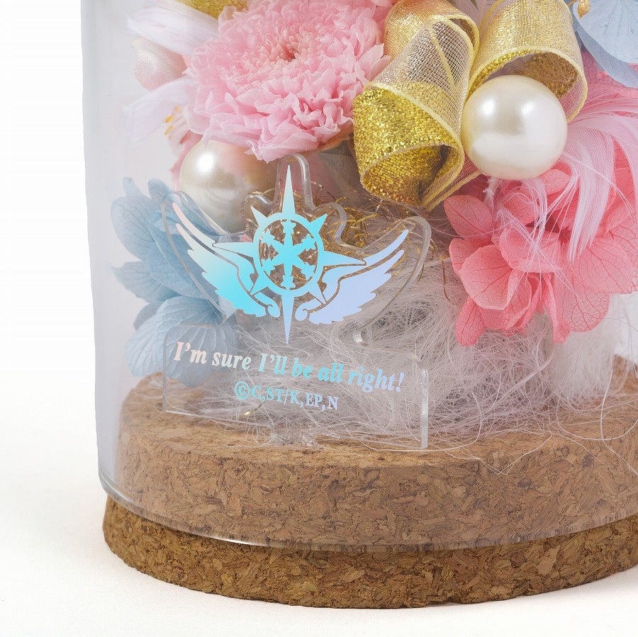 また、美しい花があなたを癒やし、勇気づけてくれるよう願いを込めてオーロラ箔のプレートにはさくらちゃんの「絶対だいじょうぶだよ!」をいうセリフを英訳してプリントいたしました。