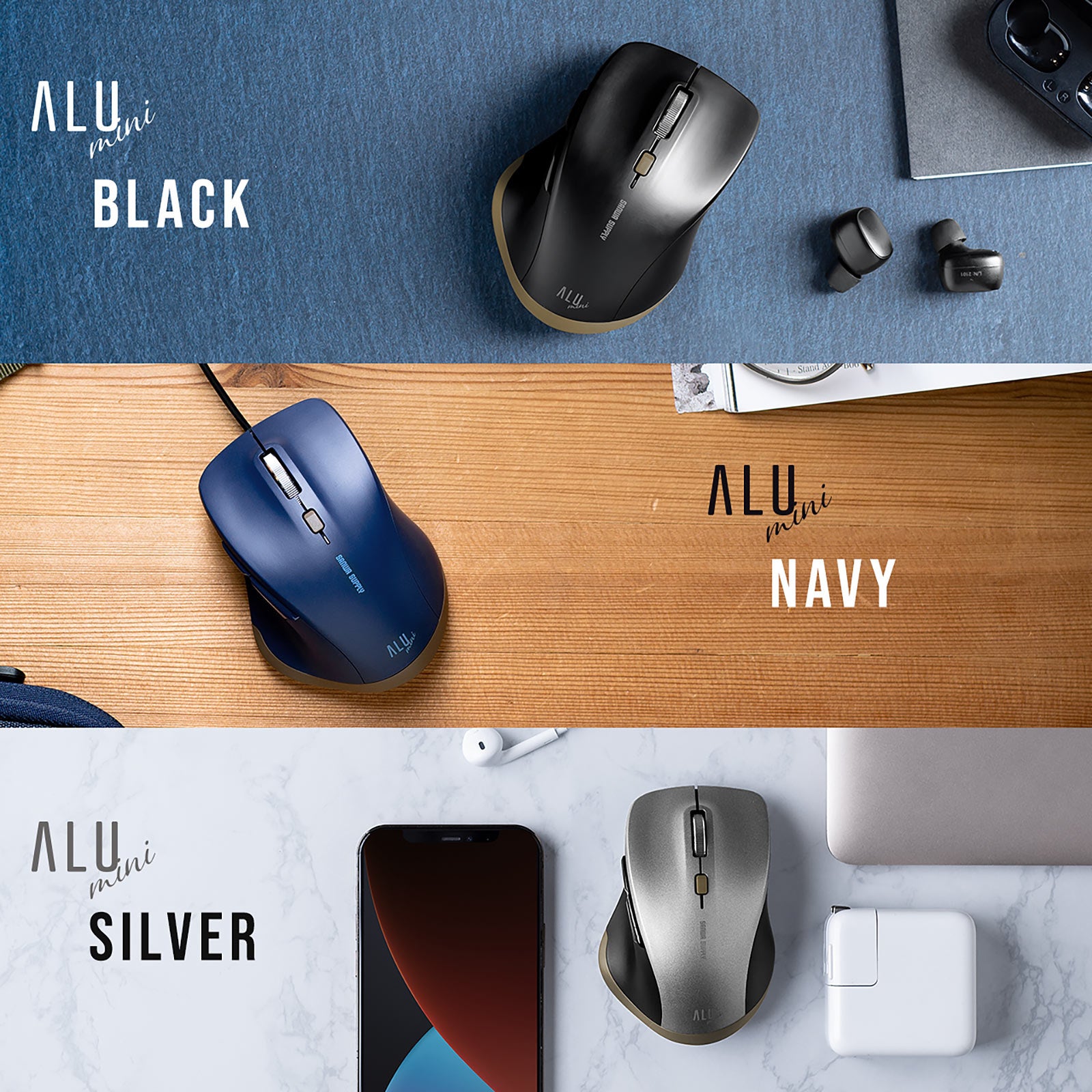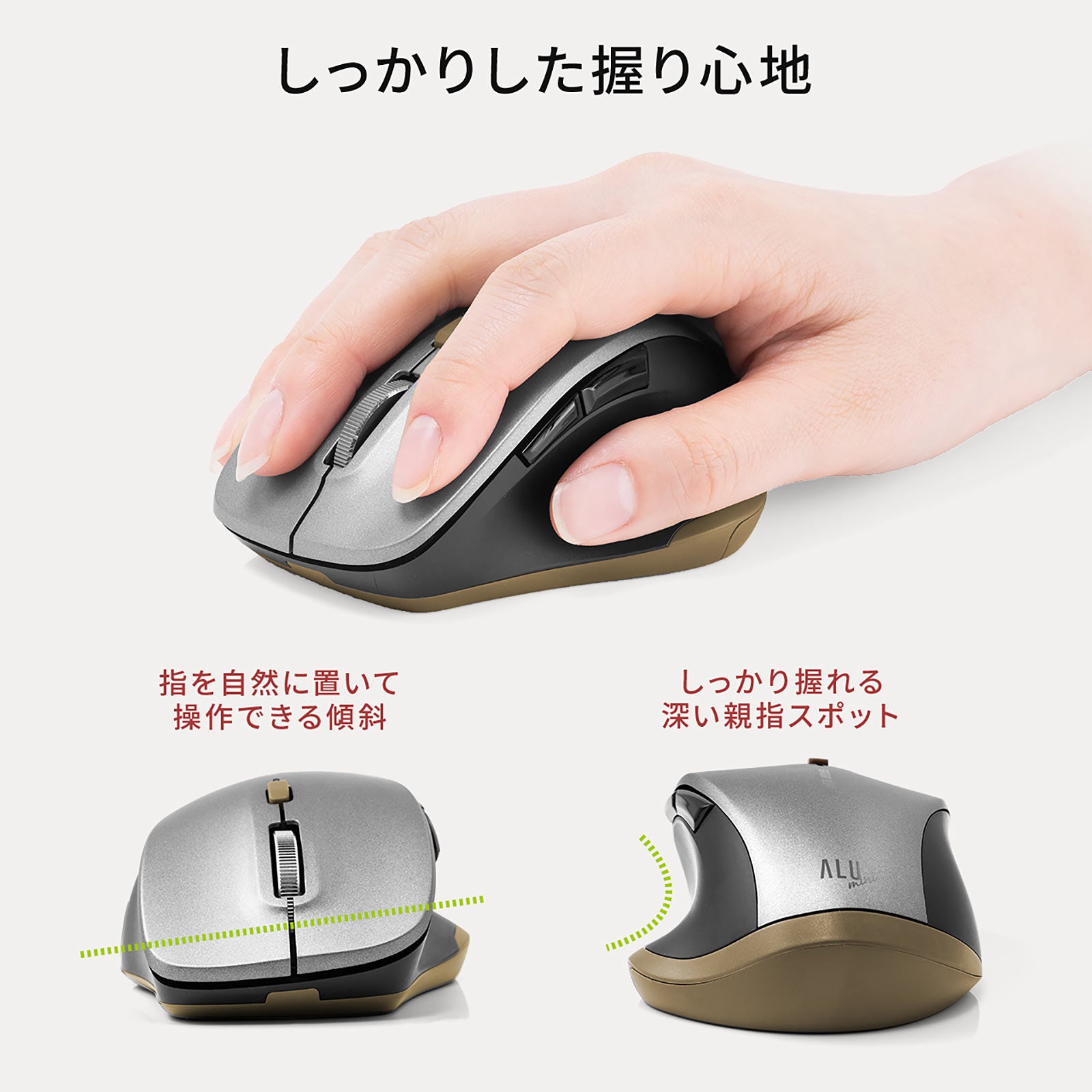 「しっかりした握り心地」と「快適な操作感」を叶えた上質なデザインを施した5ボタン小型マウスALUminiシリーズを発売を12月23日発売