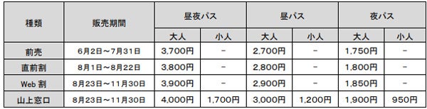 【料金】上記、夜パスまたは昼夜パスのとおり