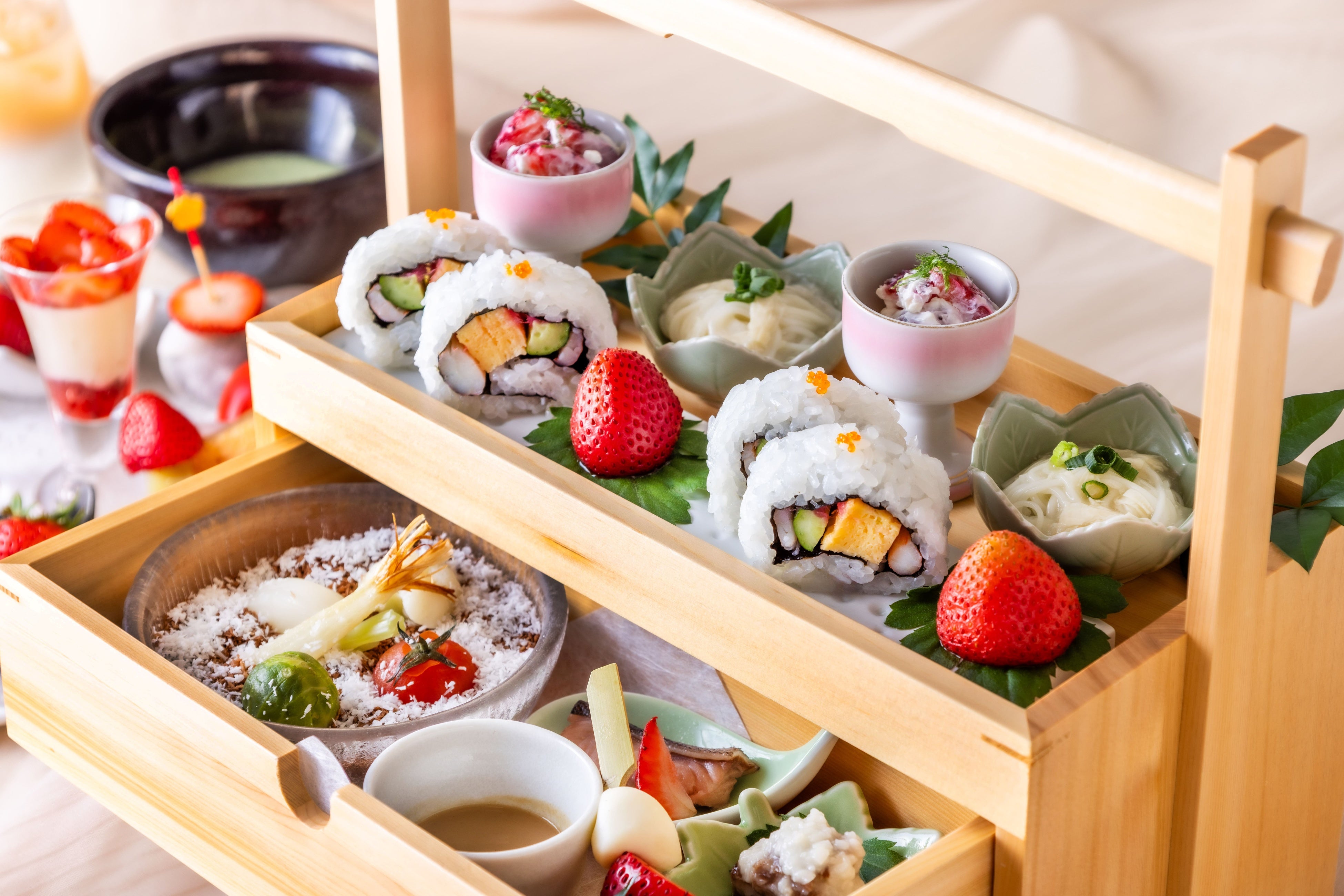 今回、日本野菜ソムリエ協会が主催する「全国いちご選手権」において、3年連続で「最も美味しいいちごを生産している県」として、全国唯一の「プレミアムいちご県」に認定された(※1)埼玉県が誇るオリジナルいちご“あまりん”や“べにたま”(※2)を使用した和風アフタヌーンティーを初めて販売いたします。
