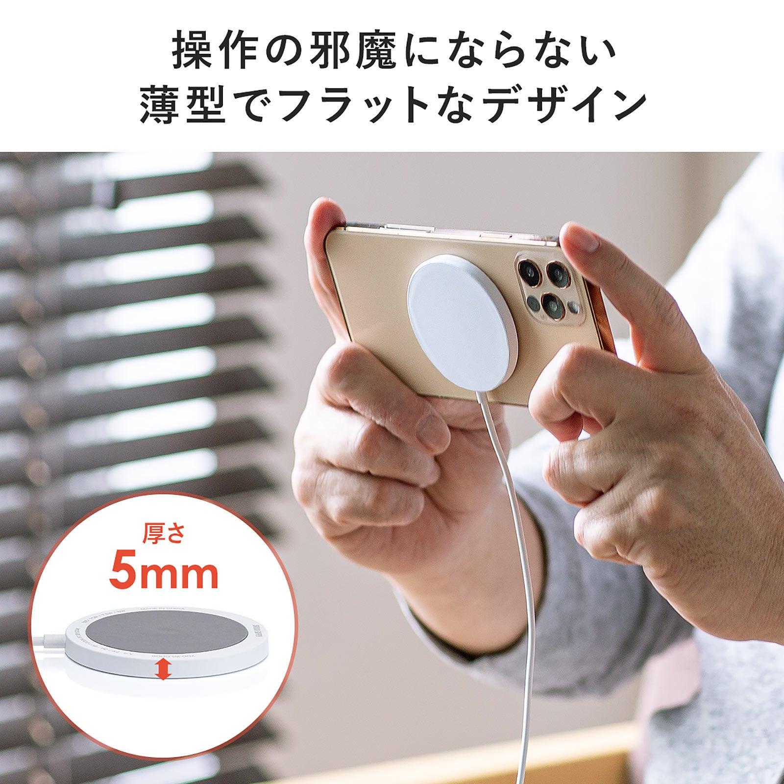 サンワサプライ株式会社(本社:岡山市北区田町1-10-1、 代表取締役社長 山田 和範)が運営している直販サイト『サンワダイレクト』では、ケーブル長は余裕をもって使える2.5mのロングケーブルを採用したMagsafe対応iPhoneの充電に対応したマグネットワイヤレス充電器「700-WLC005」を発売しました。