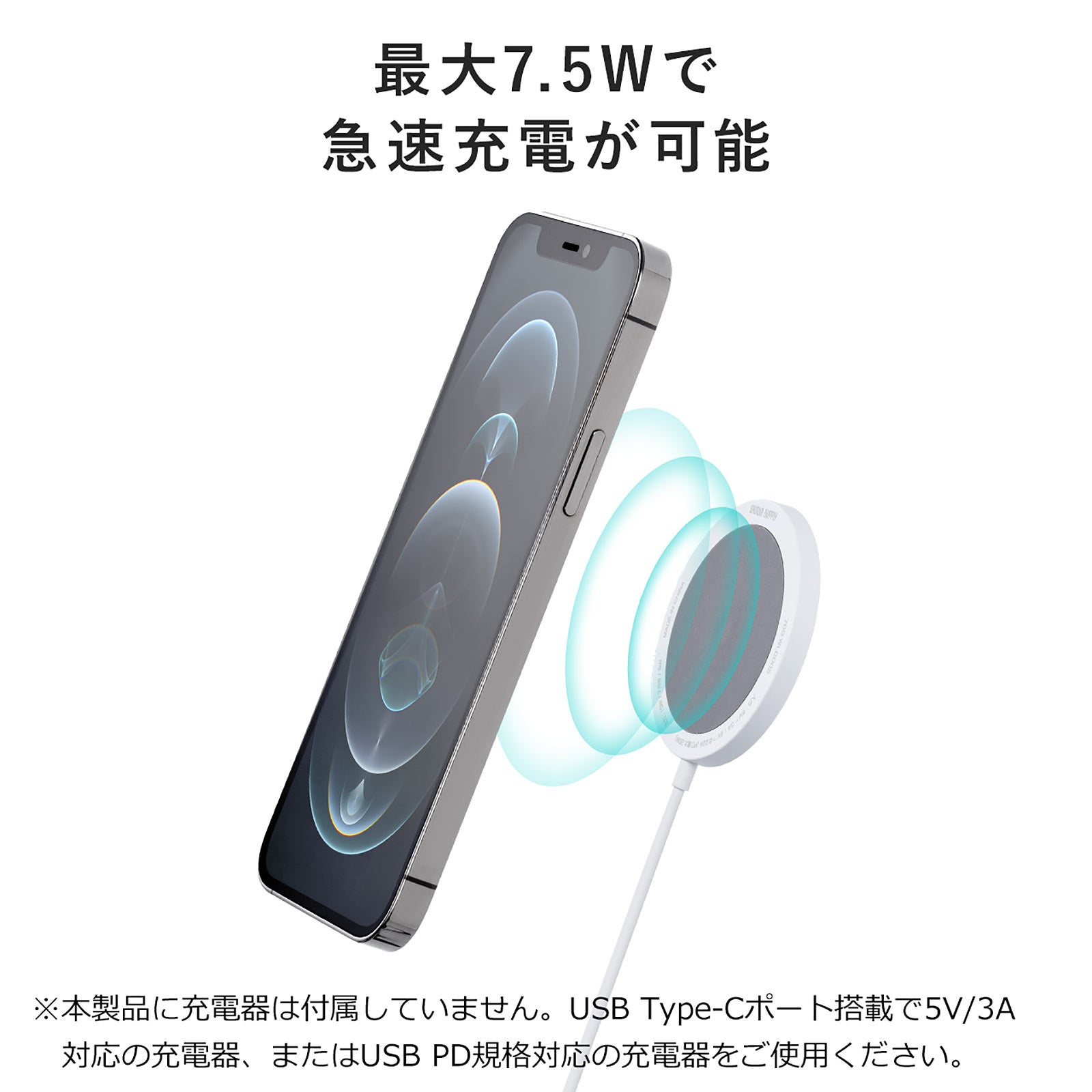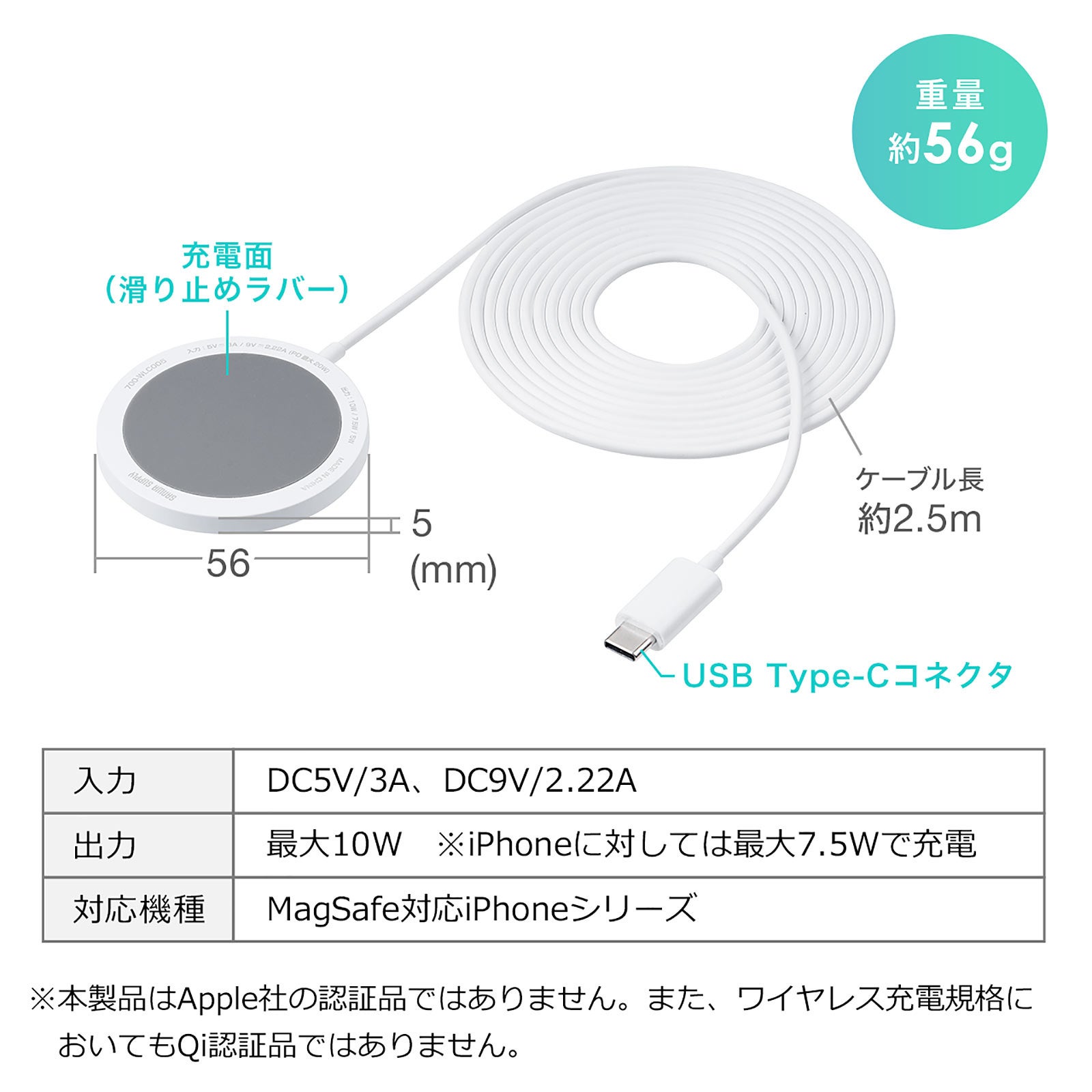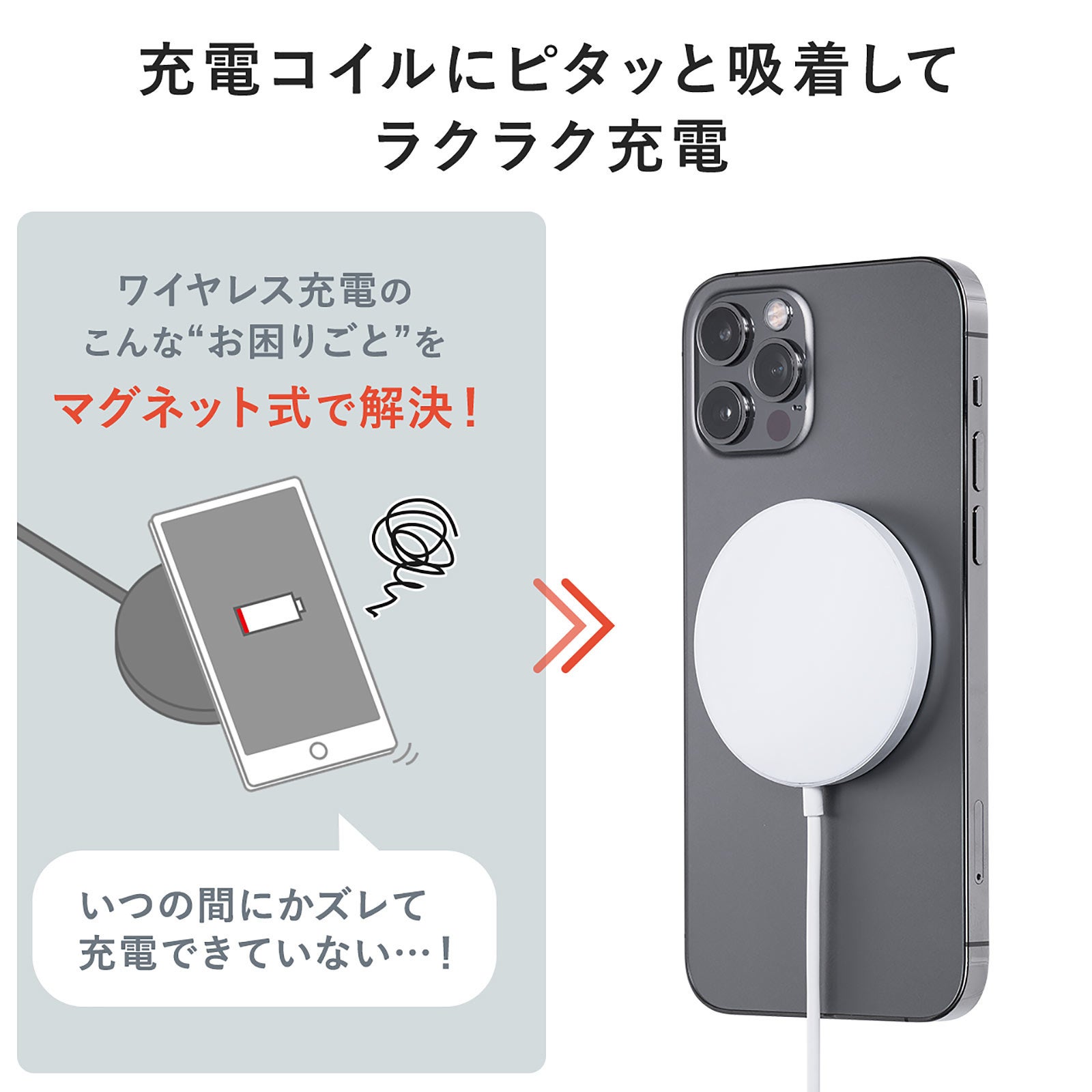 マグネットワイヤレス充電器 Magsafe対応iPhone Qi規格互換性 ケーブル長2.5m 一体型 iPhone12/13シリーズ