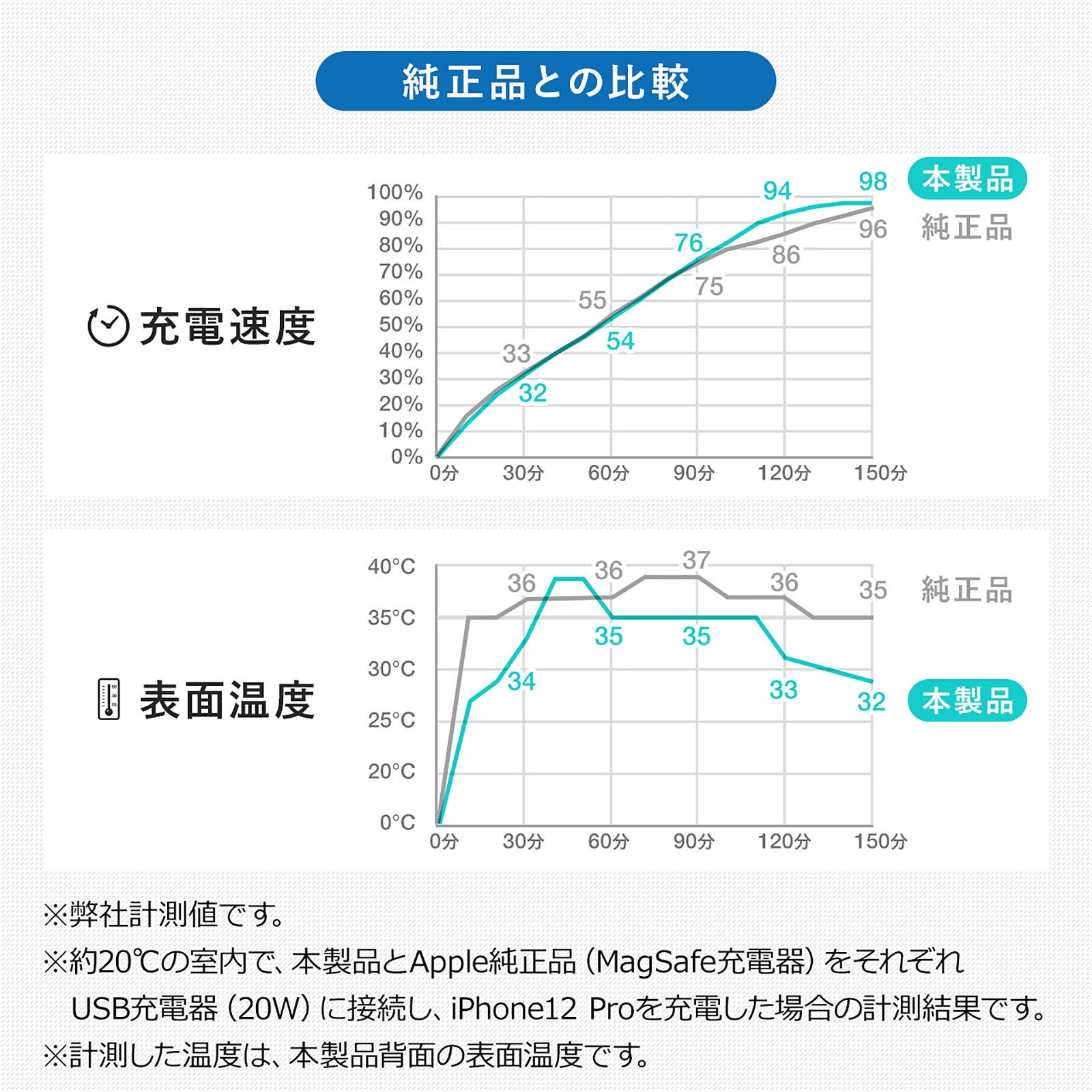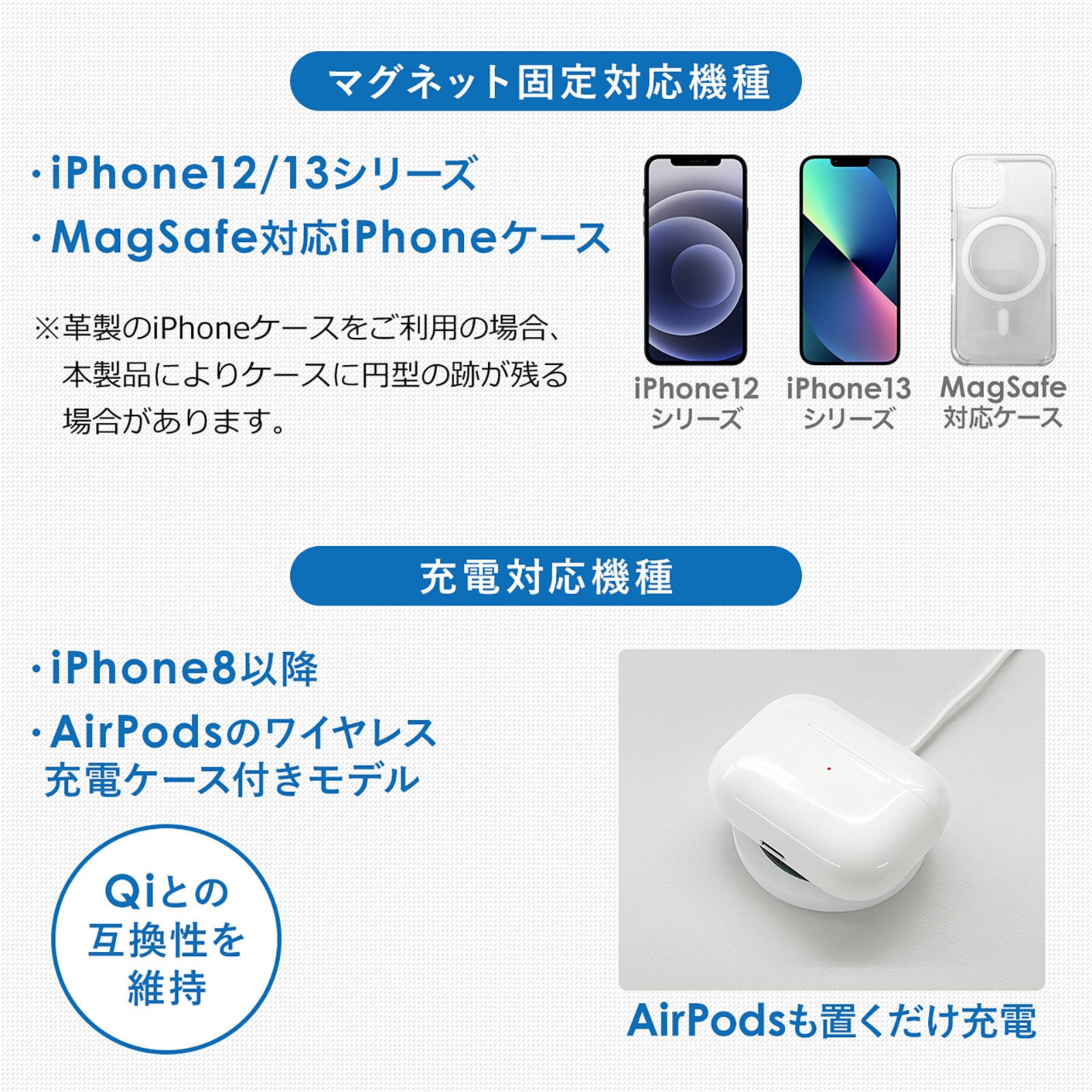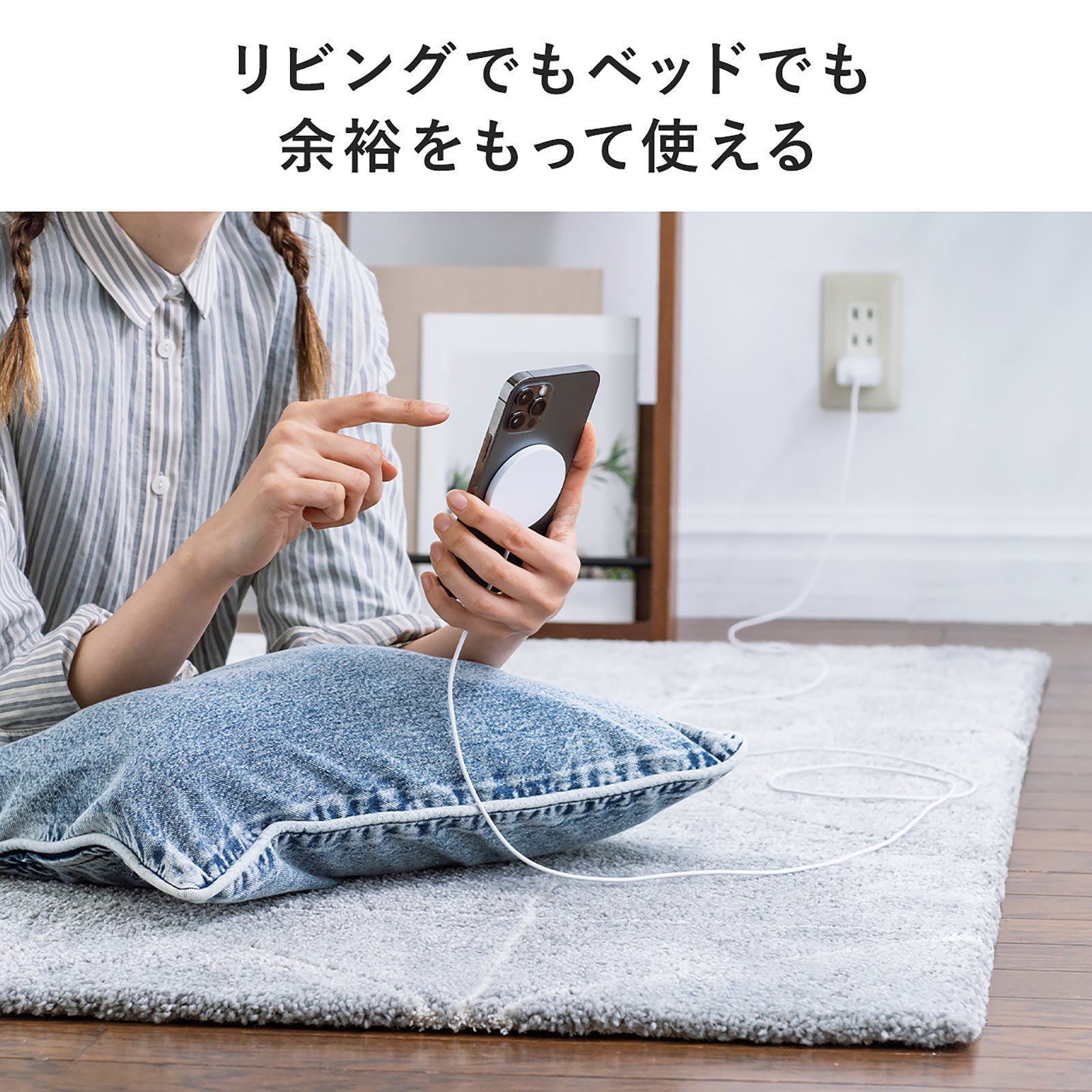 マグネットワイヤレス充電器 Magsafe対応iPhone Qi規格互換性 ケーブル長2.5m 一体型 iPhone12/13シリーズ