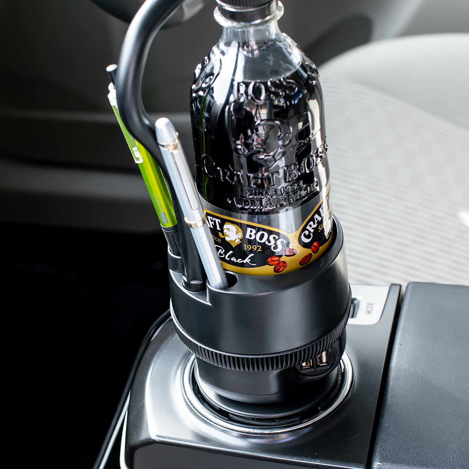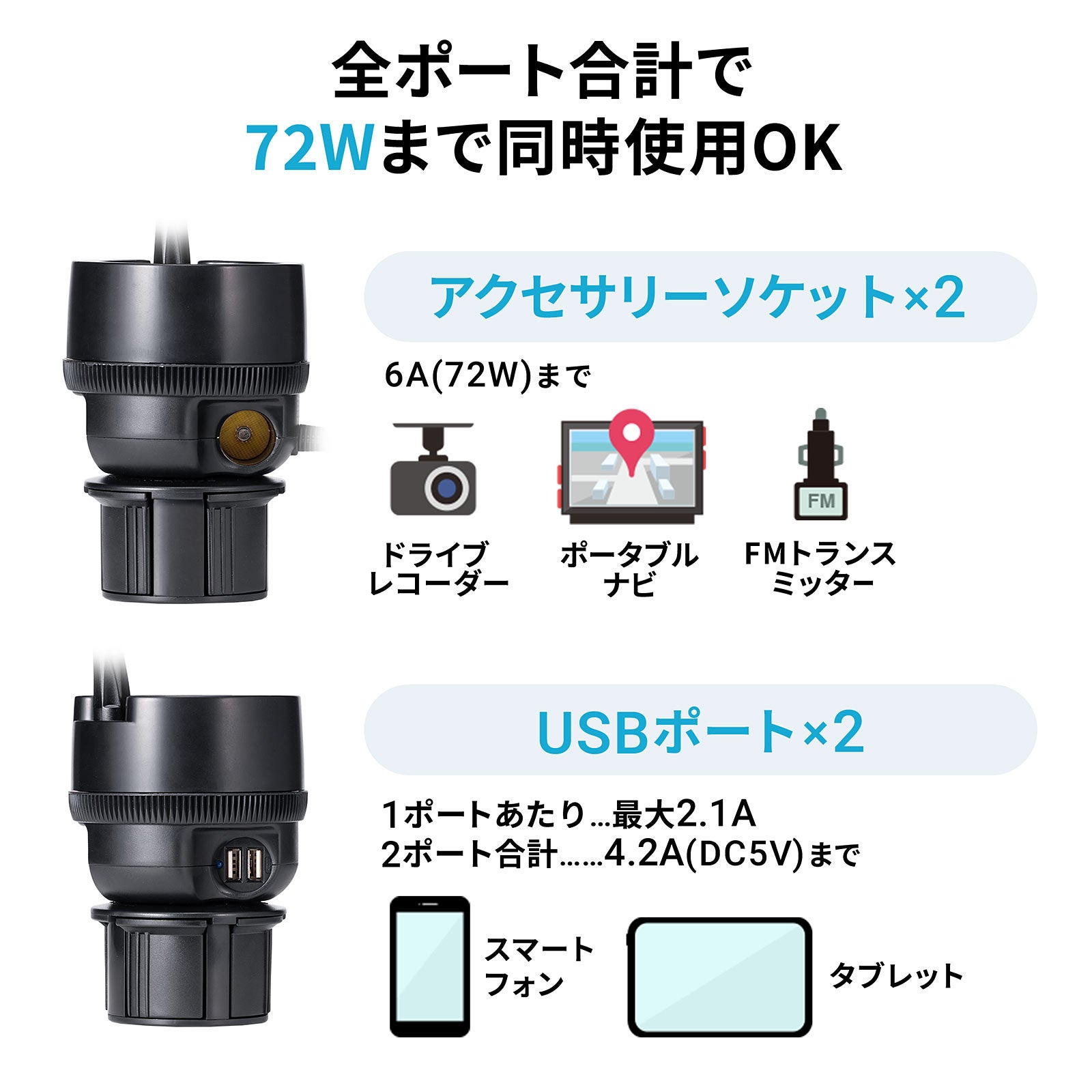 スマホと飲み物を置けて、充電・給電も行えるスマホ車載ホルダーを12月24日発売