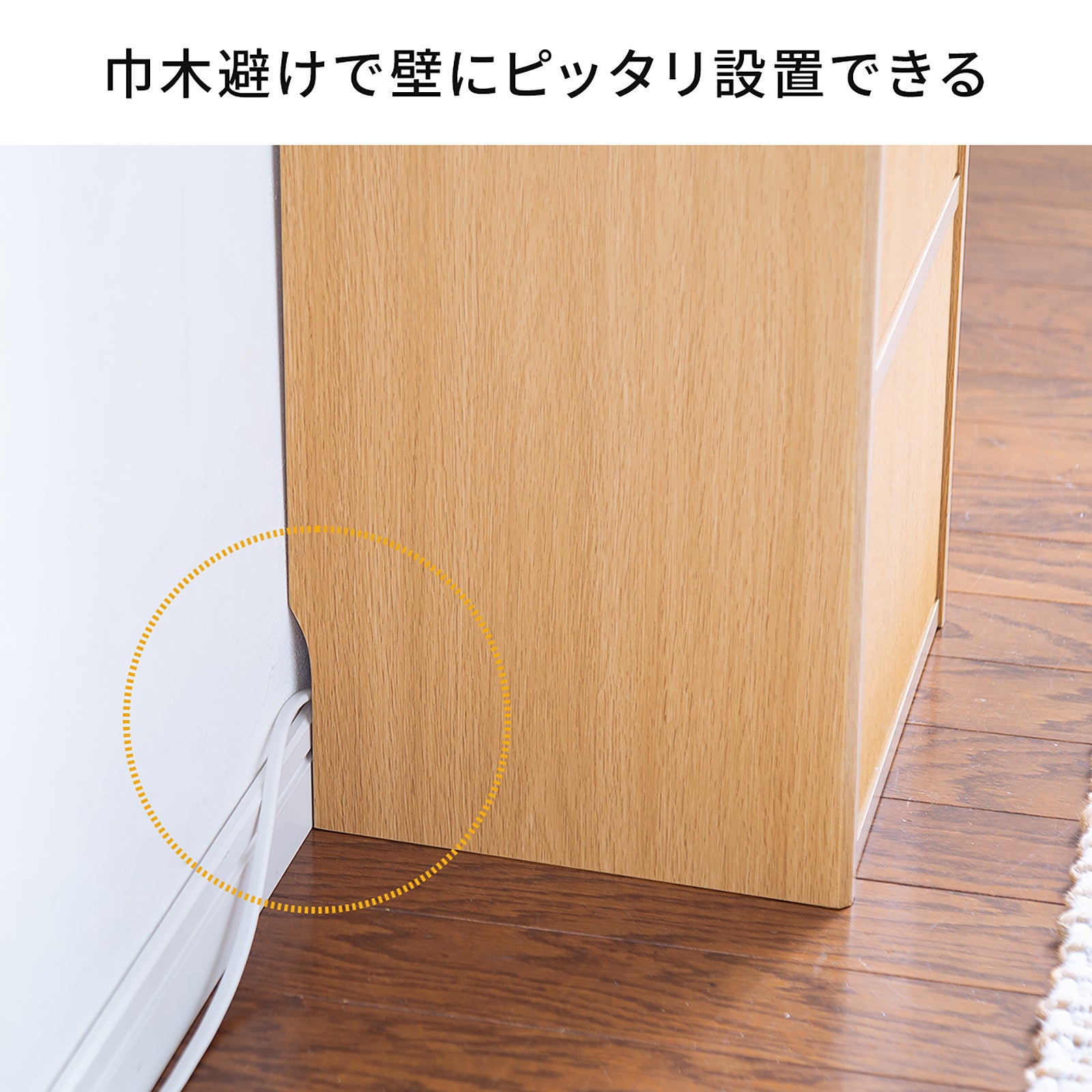 本製品は、ケーブルや電源タップ、Wi-Fiルーターなどが綺麗に収納ができる木製の収納ボックスです。ごちゃごちゃしがちなケーブルをキレイにし見た目もスッキリさせることができます。