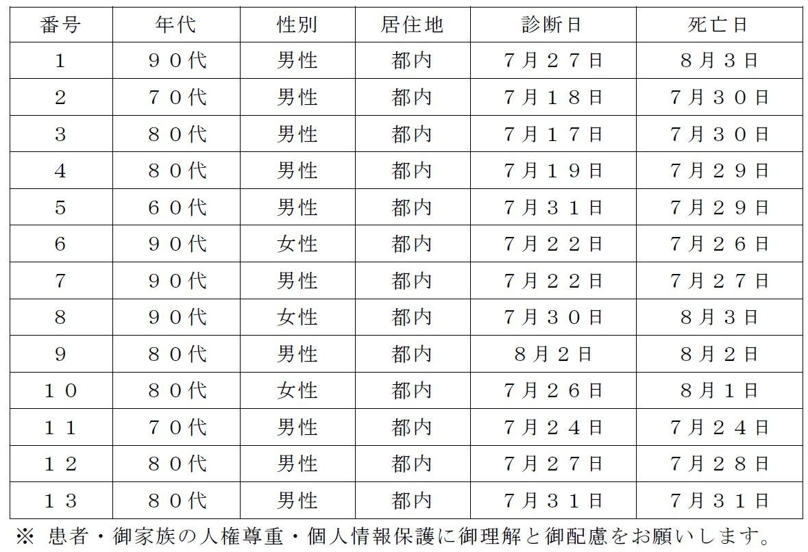 都内で新型コロナウイルスに感染した方が死亡されましたのでお知らせします。