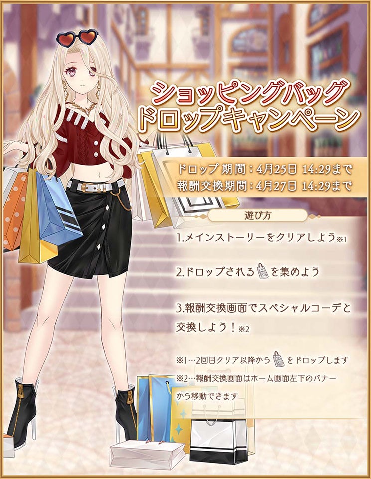 メインストーリーをクリアすることで、専用アイテムのショッピングバッグをゲット♪