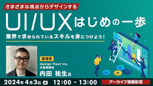 講師を務めるのは、デザイン教育・IT教育を専門に活動するdesign fleet inc.の内田祐生氏です。本セミナーでは、UI/UXについて興味はあるけどまったく知らない、今はUI/UXについてよくわからないけど、「UI/UXデザイナーにシフトしていきたい」「UI/UXをきちんと意識してWebサイトを制作したい」「UI/UXを取り入れた提案をしたい」とお考えのWebデザイナーやディレクター、マーケター、コーダーの方々や、職業訓練やスクールを卒業・修了したばかりの方、独学でデザインやマーケティングを学んだ方に向け、業界で求められているUI/UXのスキルについてお話ししています。ご興味のある方は、ぜひご参加ください。