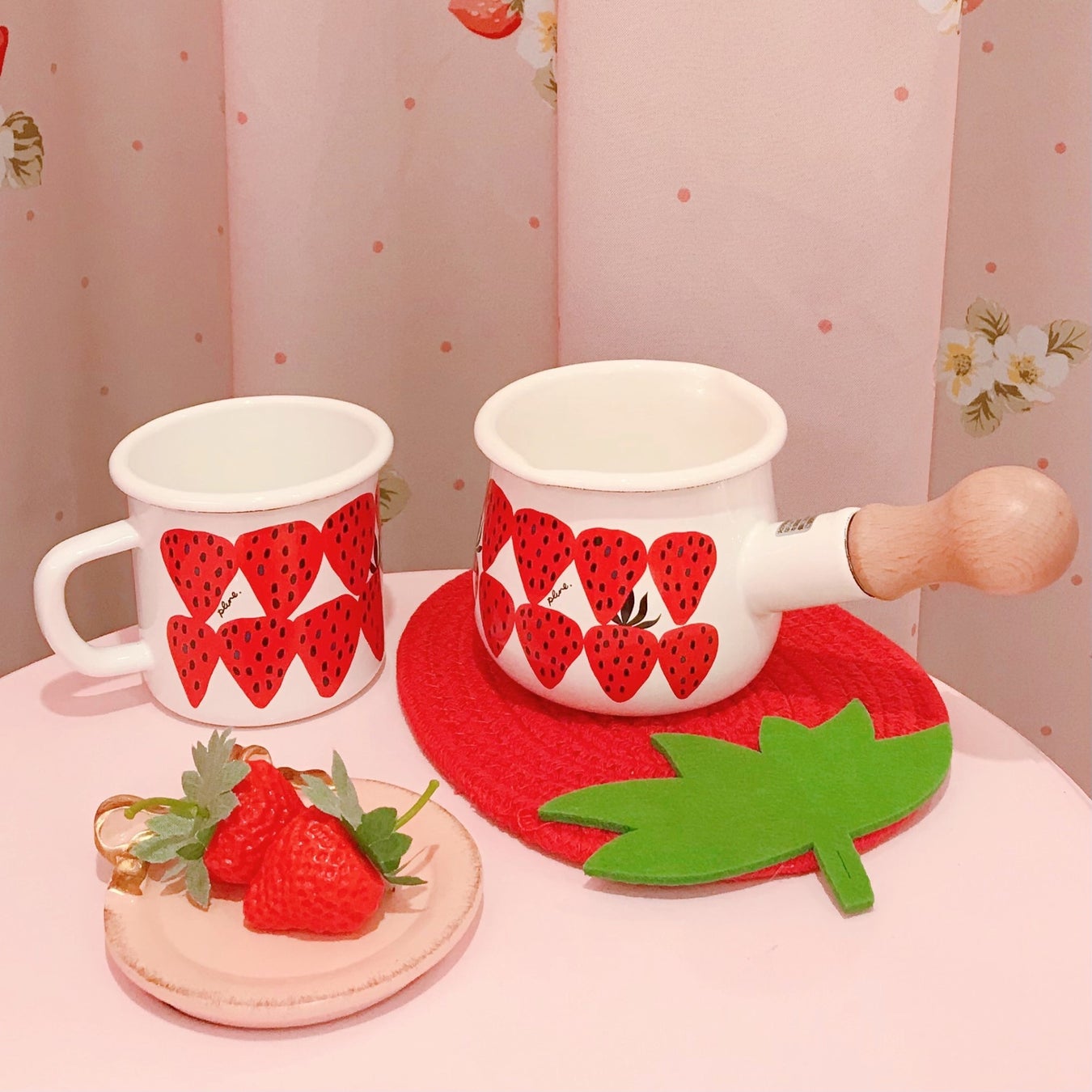 ・いちごホーローマグカップ(左)