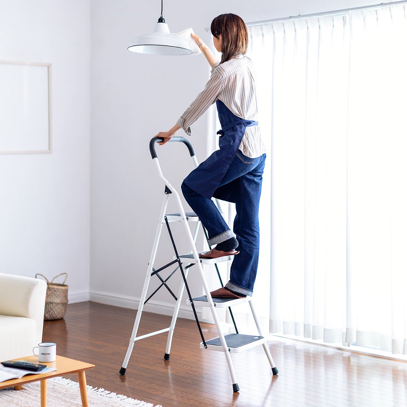 隙間にスッキリ収納できる高い場所でもしっかり安定して作業ができるステップラダーを1月7日発売