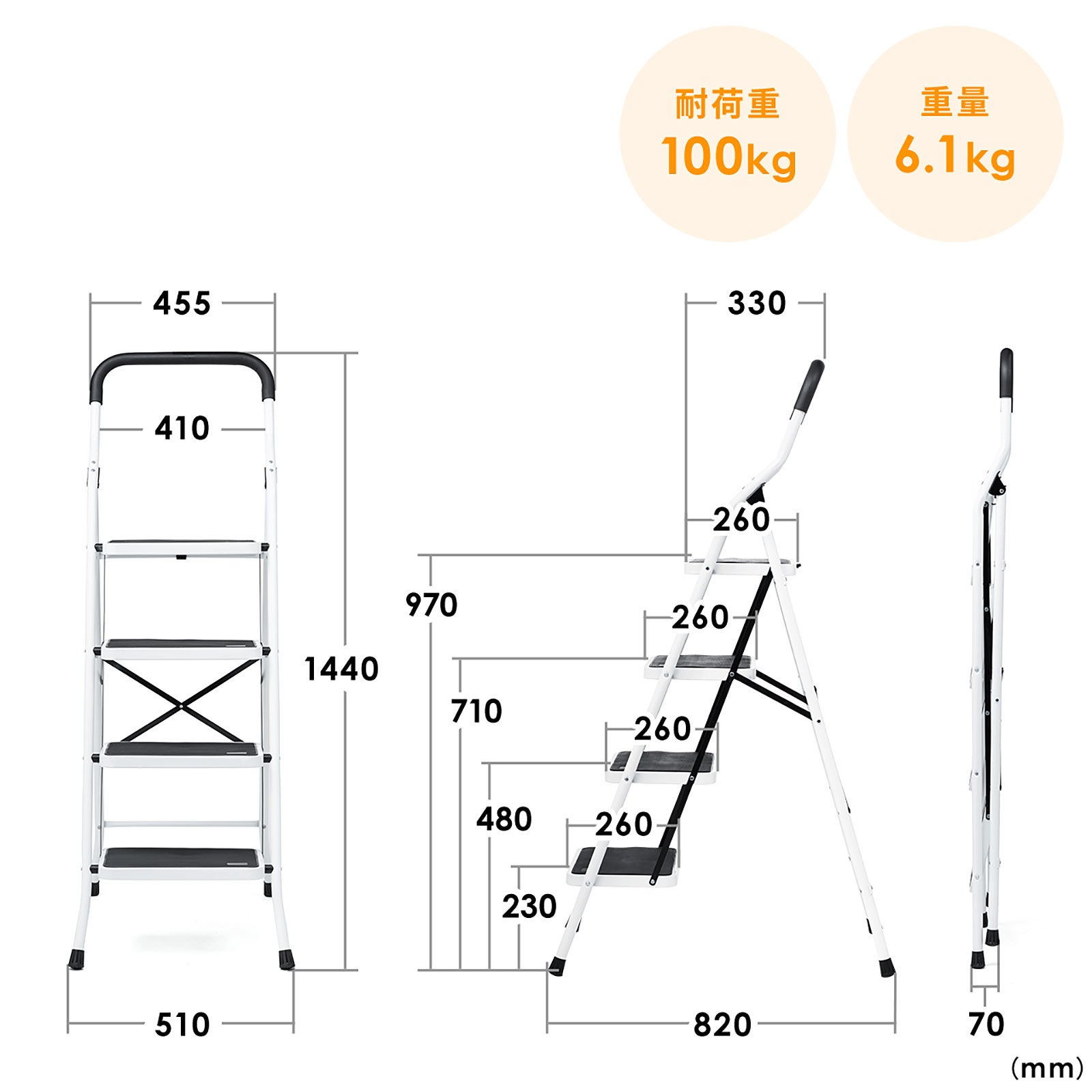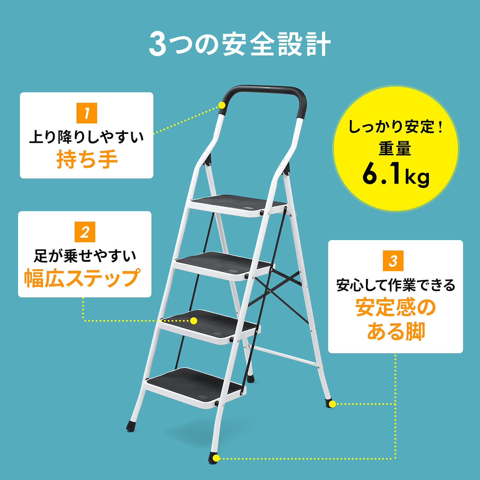 ステップラダー 脚立 折りたたみはしご 足場 4段 耐荷重100kg