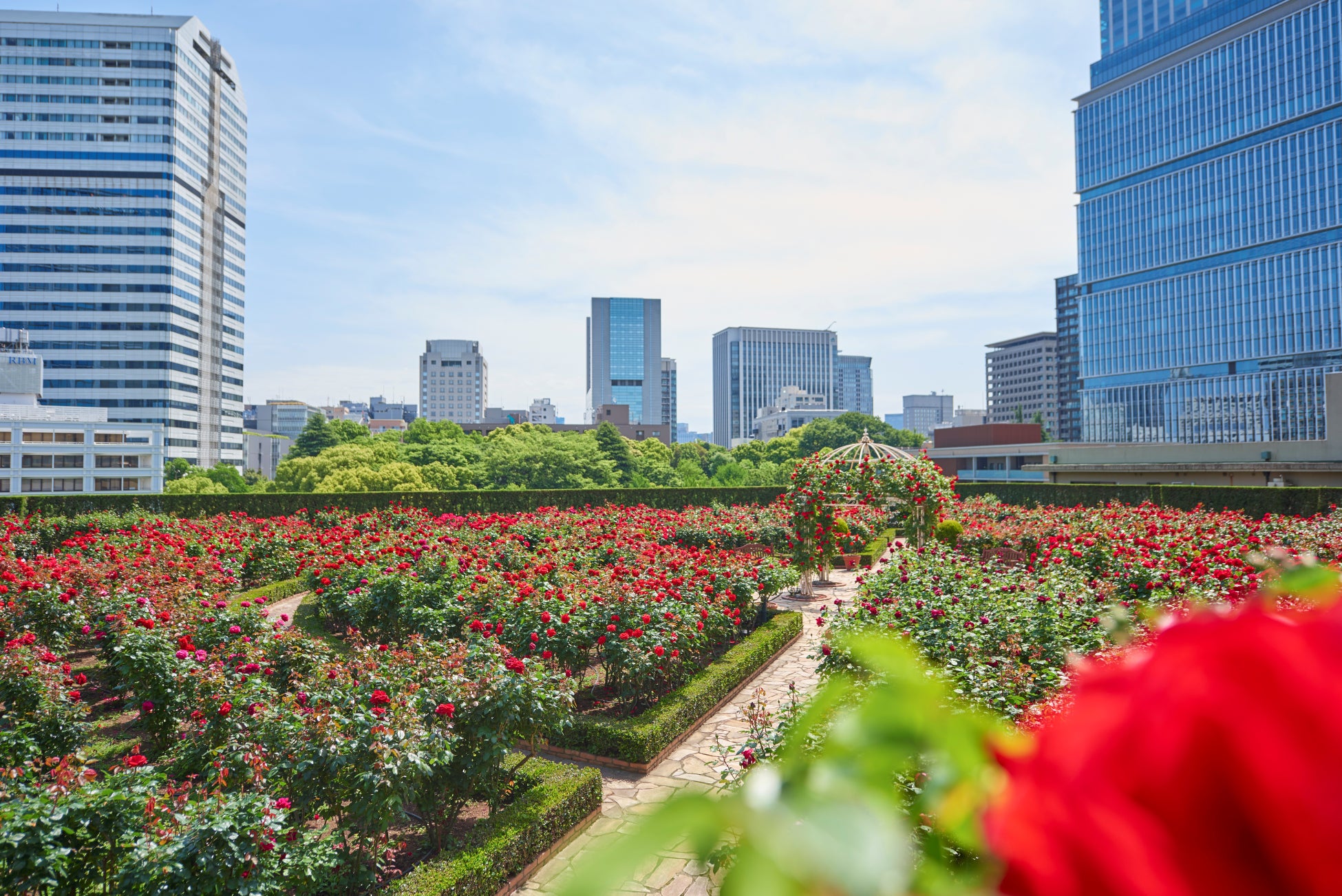 ホテルニューオータニ(東京)にあるRed Rose Gardenは、英国王室御用達のブランドを手掛ける世界的フローラルデコレーター ケネス・ターナー氏監修のもと、2000年11月に屋上緑化の一環として誕生し、今年25周年を迎えます。春と秋の年2回、約30種3万輪もの赤薔薇が咲き誇る景色は圧巻の美しさで、多くの方々に親しまれています。これから咲き始める秋薔薇は、花の大きさと色の鮮やかさが特徴で、Red Rose Gardenを華やかに彩ります。