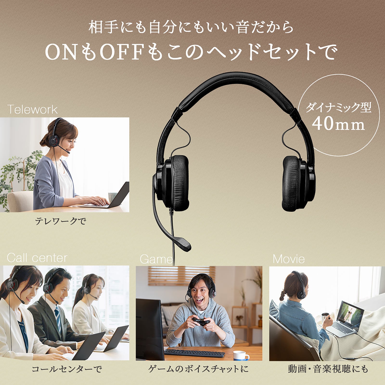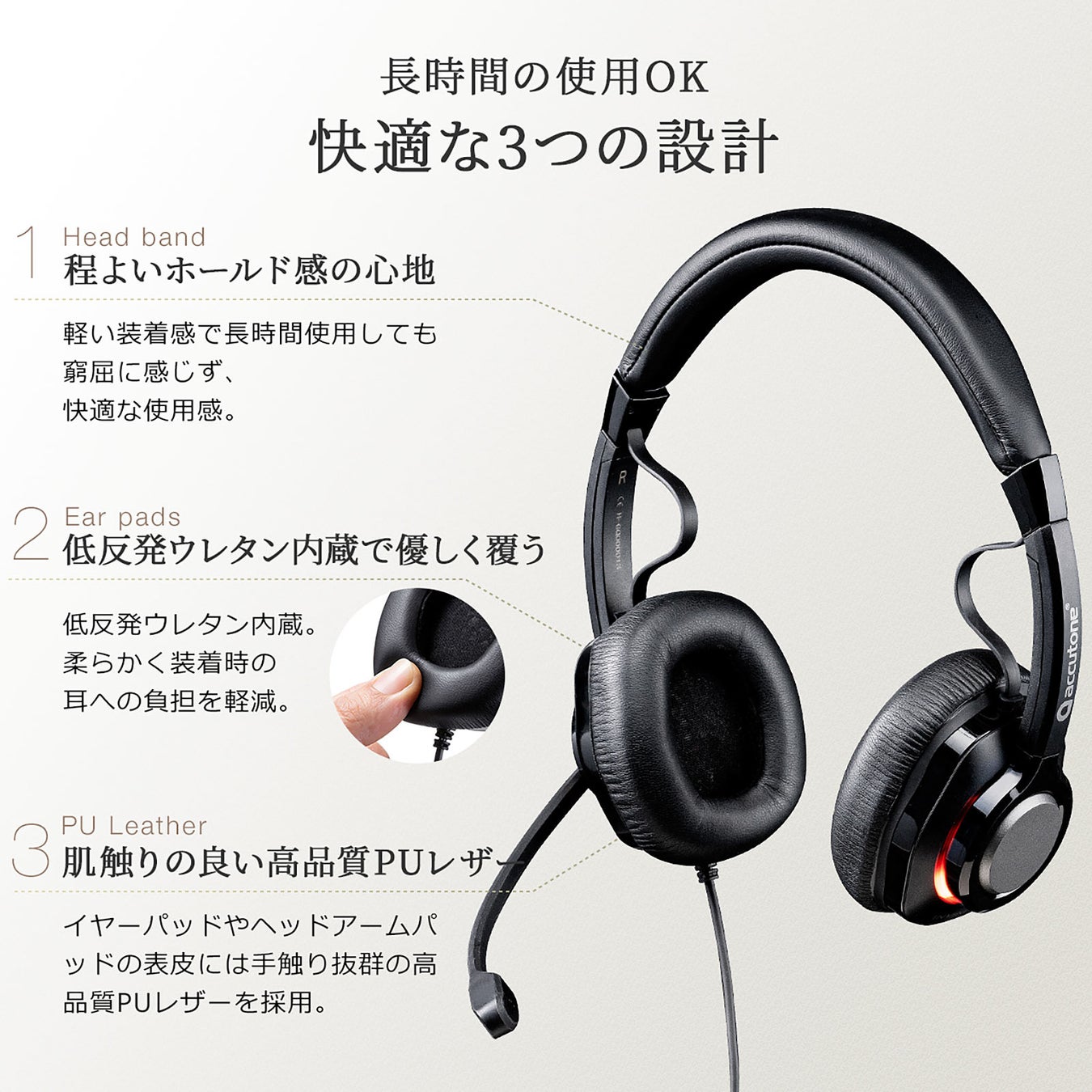 本製品は、WEB会議やオンラインゲームでのボイスチャットに適したUSB接続タイプの両耳ヘッドセットです。