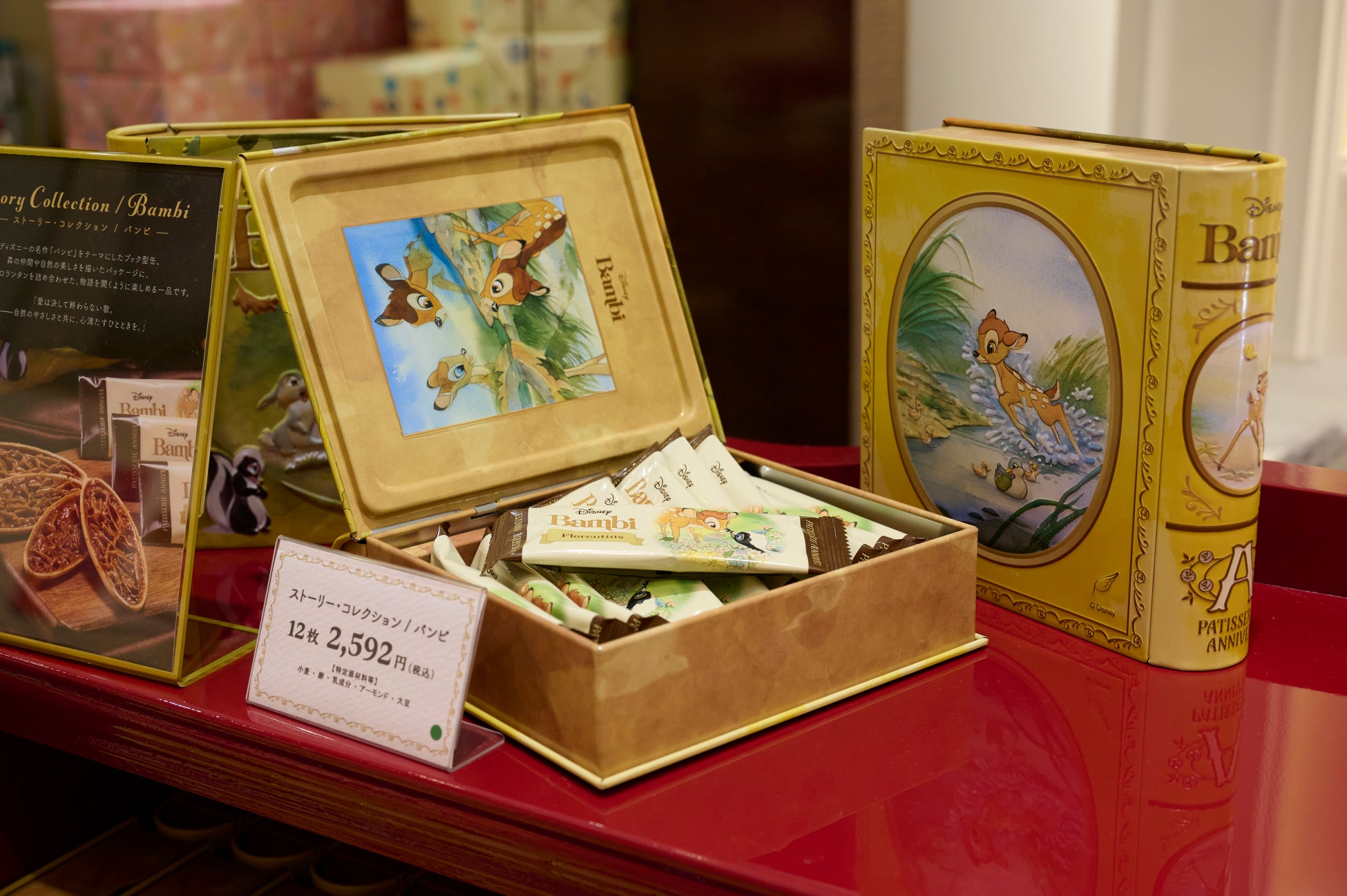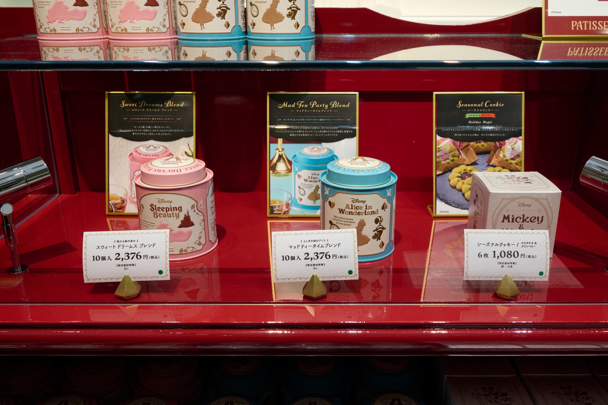 店内にはキービジュアルの「ミッキー&ミニー」がお出迎えし、人生の特別な日に “おめでとう" と “ありがとう” の気持ちをお届けしています。ブランドカラーとなるボルドーで落ち着いた色合いで、高級感や上品さを演出。また、店内サイネージでは季節ごとにおすすめするスイーツをディスプレイし、お客様へ訴求してまいります。