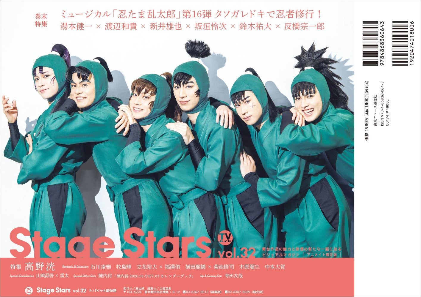 『ACTORS☆LEAGUE in Games』プロデューサー・高野洸が表紙を飾る「TVガイドStage Stars vol.32」発売! 裏表紙にはミュージカル「忍たま乱太郎」六年生キャストが登場