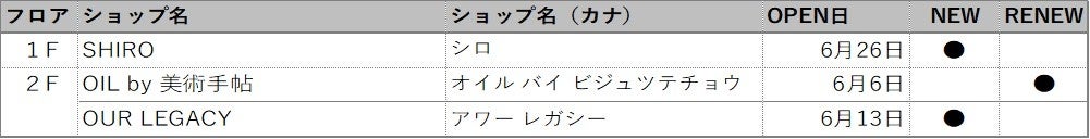 2025年6月 SHIBUYA PARCO 改装店リスト
