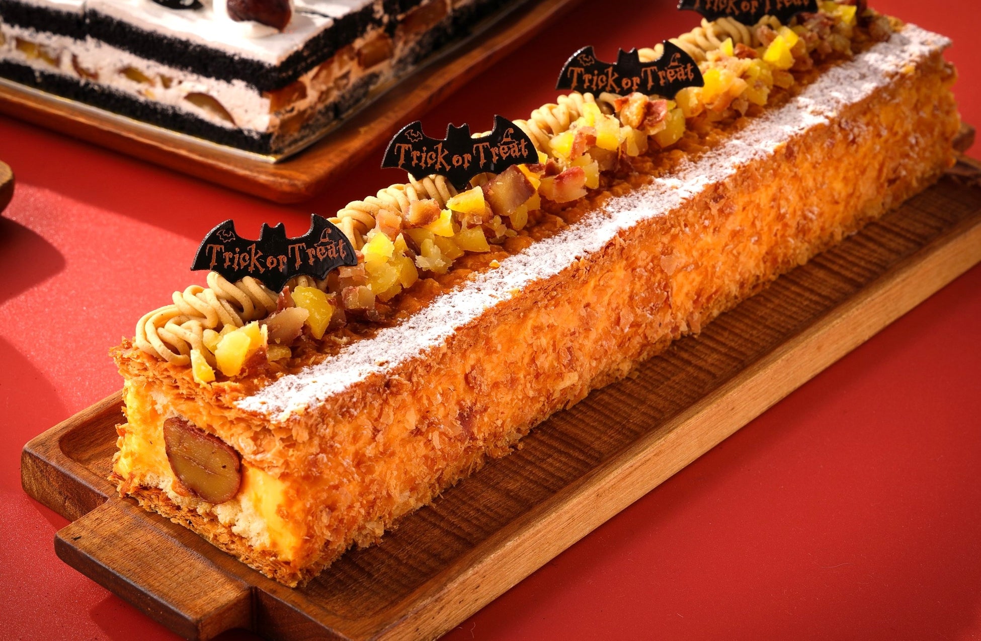 様々なスイーツの上にランダムに並ぶ可愛らしいジャックや猫、コウモリなどのデコレーションもハロウィン気分を盛り上げます。