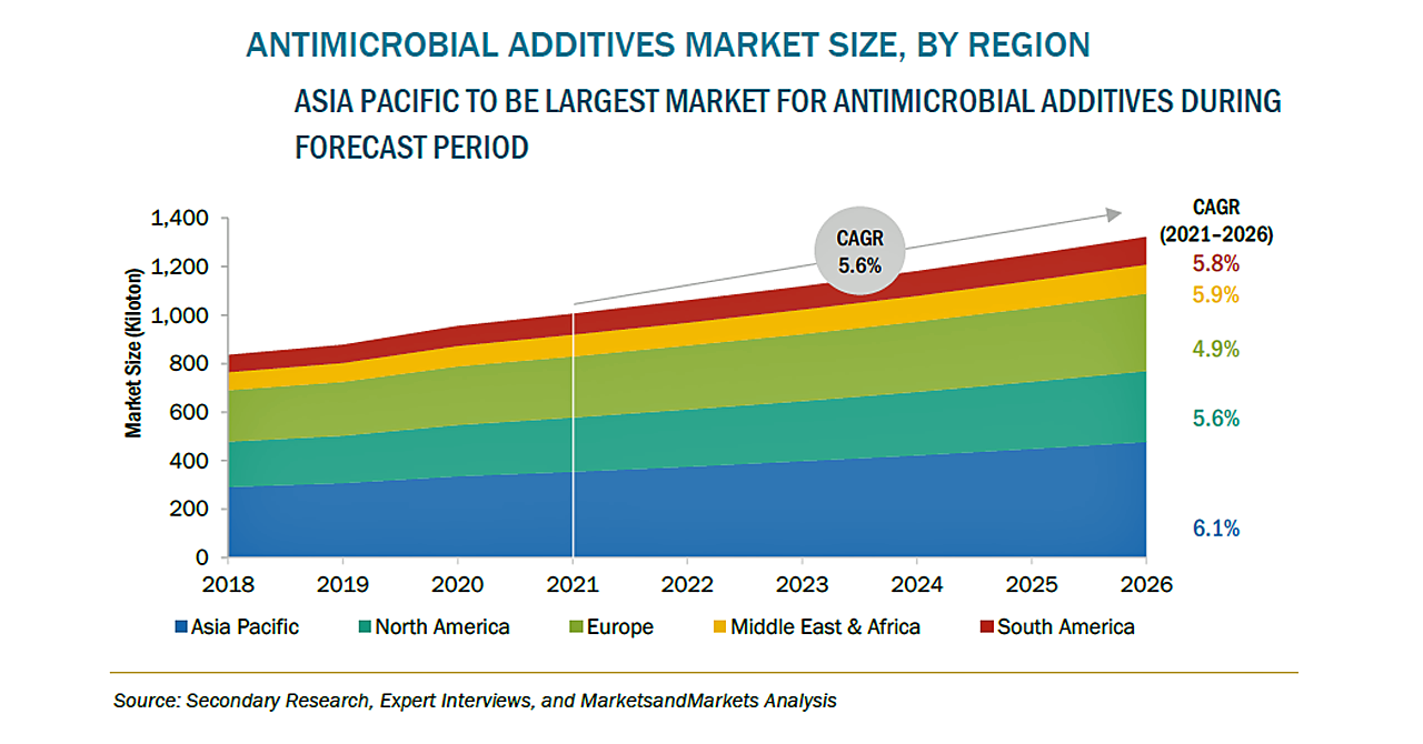 抗菌添加剤の市場規模、2026年に55億米ドル到達予測