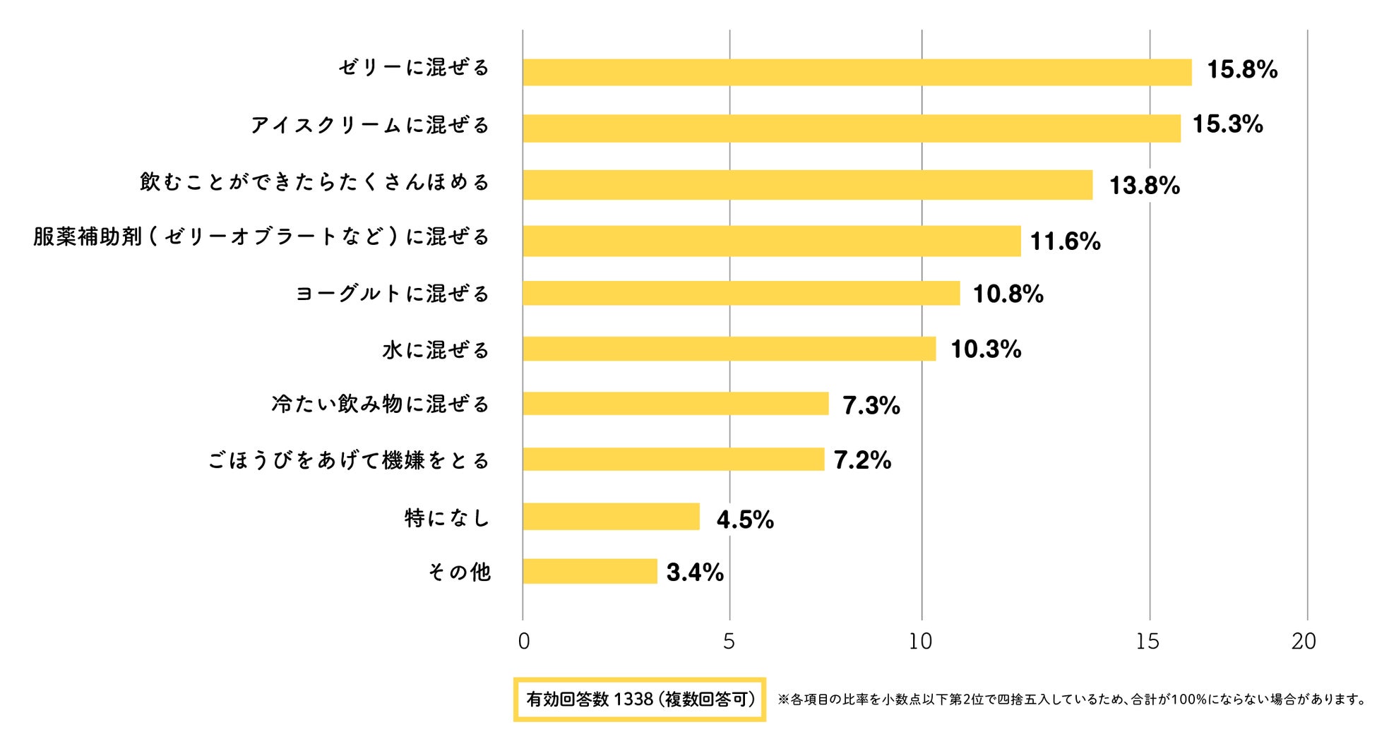 Q.お子さんに薬(主に粉薬)を飲ませる時に工夫していること(していたこと)はありますか?(複数回答可)