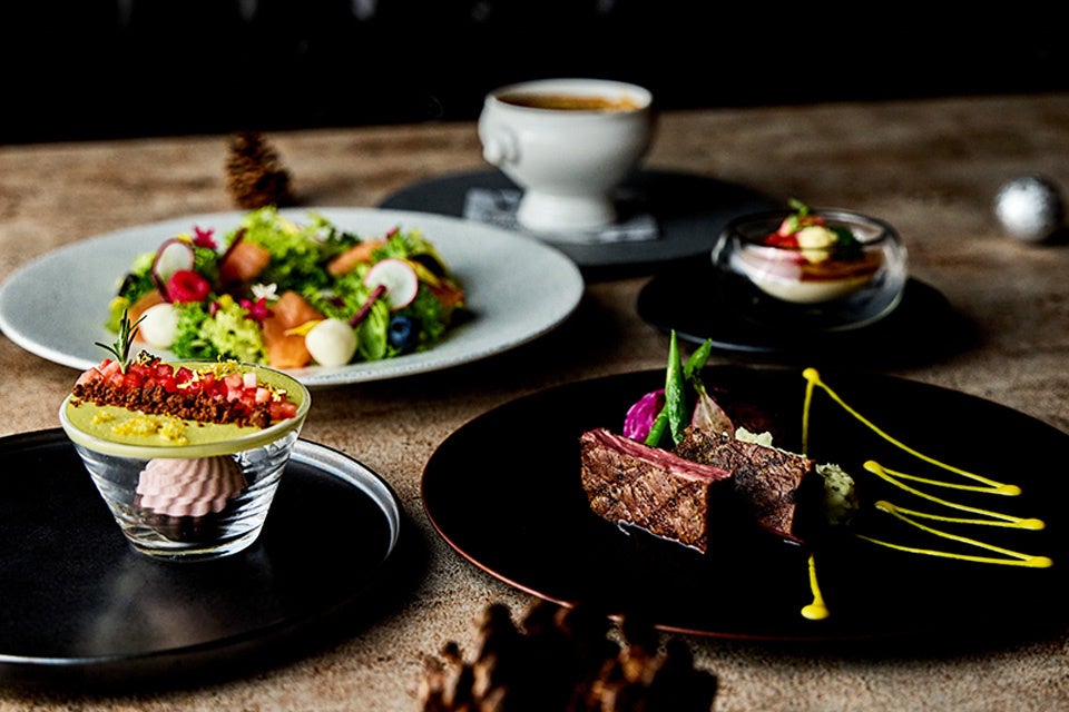 12月24日にのみ提供するコースは、ローカルピースで魅せる内容になっております。「レコード」の円盤に見立てたルッコラソースを纏った帆立と甘エビのタルタルや、「センター街」の形に描いたソースが映えるトリュフを添えた国産牛ヒレ肉のグリルのほか、「ハチ公」を模ったクッキーを添えた、ドライフルーツ、ナッツがアクセントのヌガーグラッセなど、SHIBUYA STREAM HOTELのカラーが詰まった全6品がご堪能いただけます。