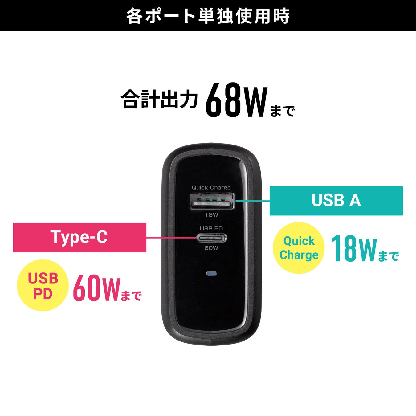 「ACA-PD84BK」は、USB Power Delivery規格の60W出力に対応し、ノートパソコンなどのUSB Type-C給電に対応したデバイスへ充電ができるAC充電器です。