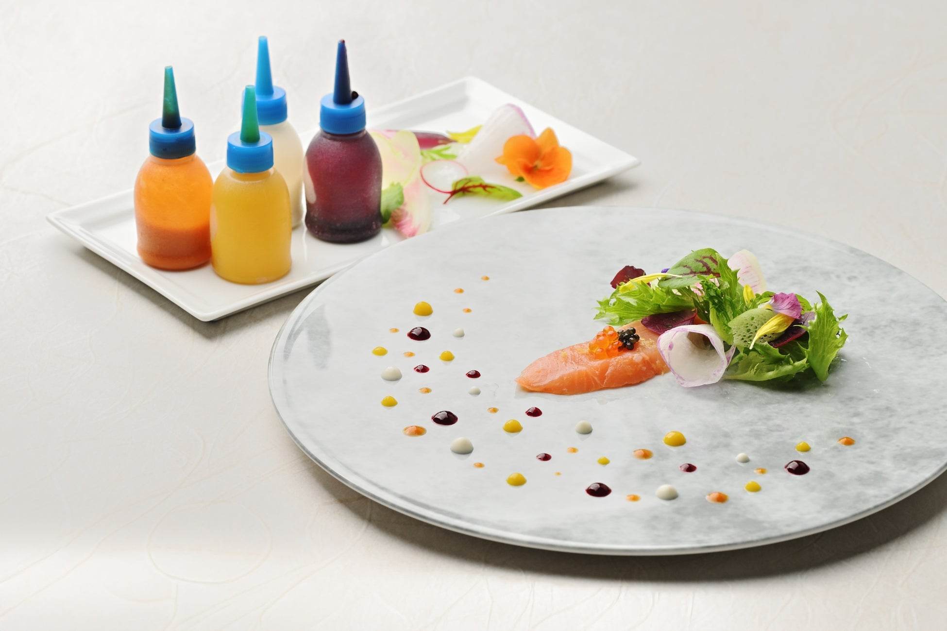 前菜のお好みのソースでお皿に自由に絵を描きながら盛り付けができる「オードブルアート体験」では、創造性を育むとともに、料理を“作る楽しさ”にも触れていただけます。ナイフとフォークの使い方やテーブルマナーもホテルスタッフがサポート。さらに食後には、メニューブックに隠された“謎解き”にもチャレンジいただき、お食事の最後までワクワクが続く、特別なひとときを演出いたします。