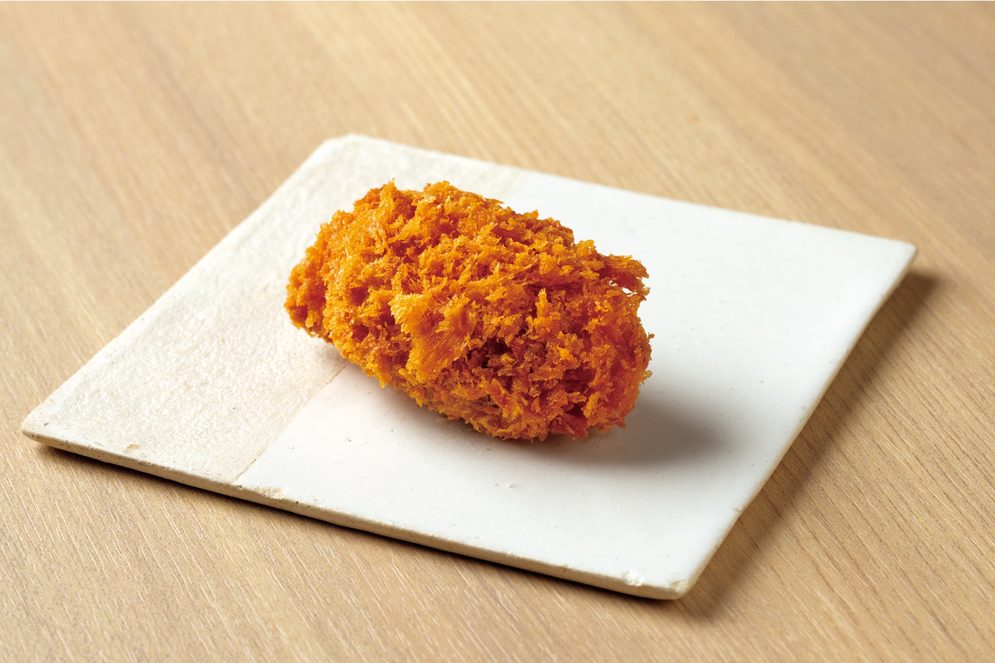 カキは、満足感を楽しめるサイズを厳選。衣は、サクサク感と軽いくちどけにこだわったパン粉を使用し、ジューシーなカキの旨みを閉じ込めました。