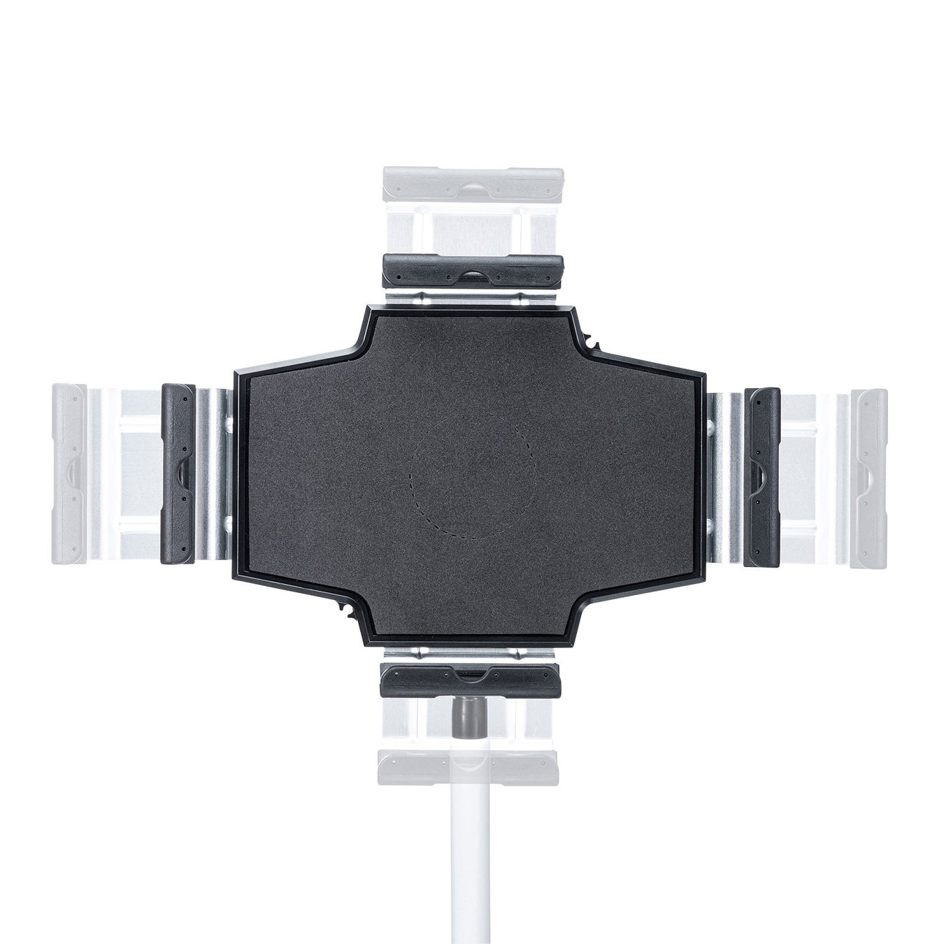9~13インチまでのiPad・タブレットに対応しており、ホルダーがタブレットを上下左右から挟んでしっかり固定できます。