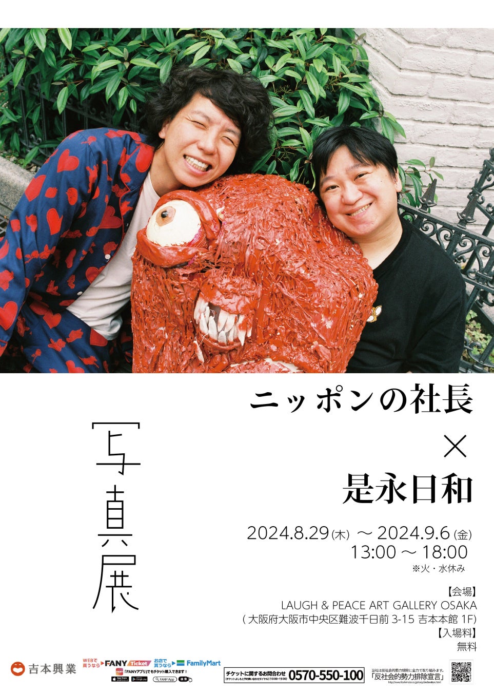 この度、この写真集に収まりきらなかった初公開写真の数々を披露する、ニッポンの社長 初となる写真展「ニッポンの社長×是永日和」をLAUGH & PEACE ART GALLERY(大阪市)にて、8月29日(木) ~9月6日(金)に開催致します。