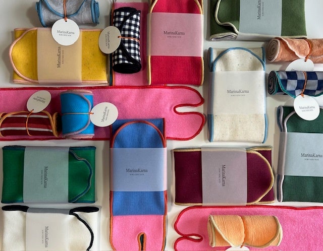 MarinaKarnaは既に存在している生地や素材にアイディアを加え新しい製品にしていく取り組みをしています。SOKUSEKI SOXは本来洋服や他の何かになるために作られた生地を使用しています。かかとのないボトルソックスは締め付けが少なく履き心地のいい靴下です。サイズはベビーサイズから大人サイズまで5サイズ。カラフルな靴下をお楽しみください。