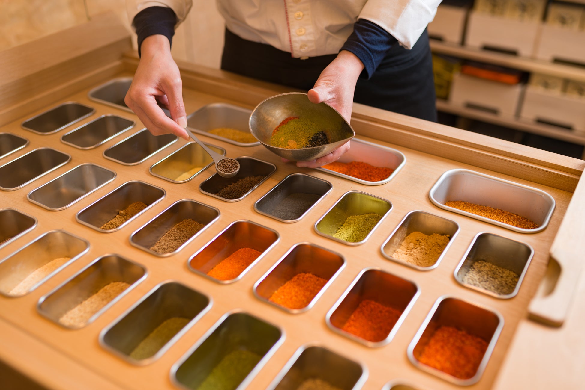 定番の七味をはじめ、スイーツ、コスメの商品を揃えて販売いたします。また今回は通常、常設店舗のみで行っている七味調合〈カスタムブレンド〉もおすすめのラインナップを揃え、その場で調合販売いたします。皆様のお越しをお待ちしております。