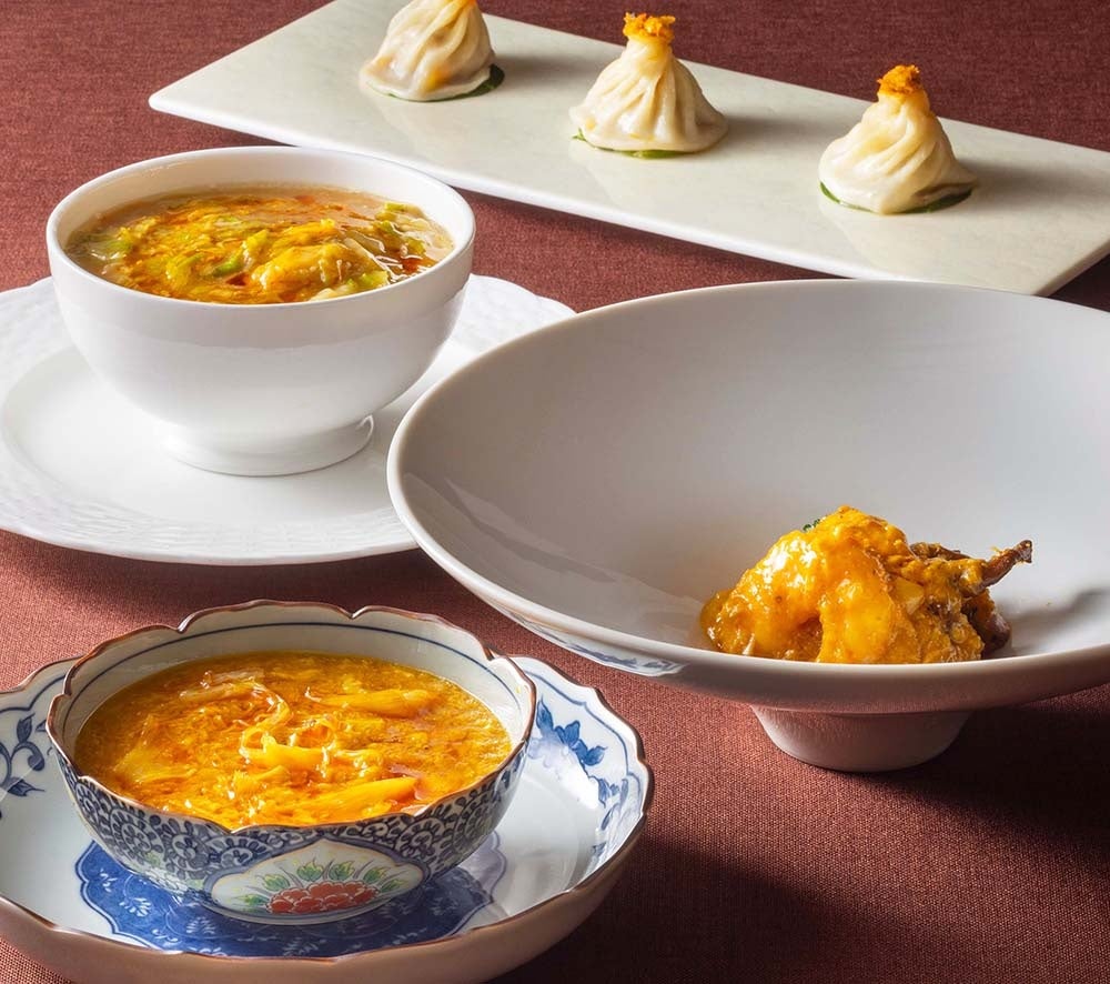 この季節に最もおいしくなると言われる「上海蟹」をテーマにした贅沢なメニューの数々をご用意いたします。ランチコースで登場する「上海蟹とフカヒレのスープ」は、濃厚な上海蟹の味噌と身を、フカヒレと一緒に煮込んだ逸品。素材の旨味と深い味わいを、寒い季節にぴったりの温かいスープでお召し上がりください。