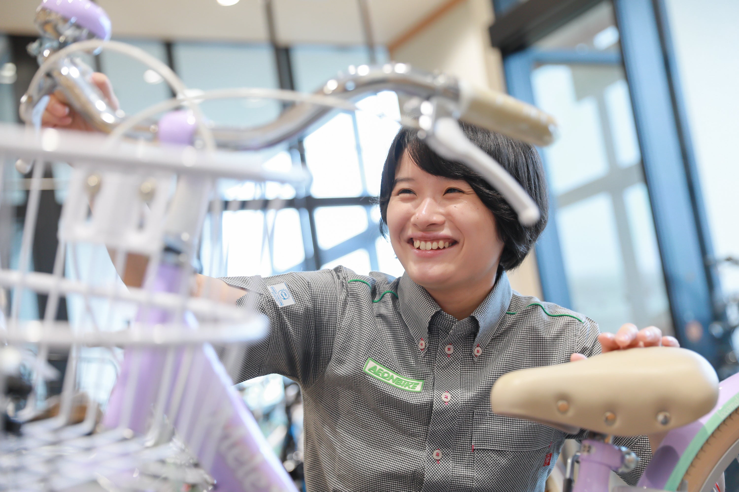 イオンバイクは2012年9月21日、イオンのGMS事業を担うイオンリテールから事業を分割して、誕生 しました。高い接客応対の基準を定めた社内資格「イオンサイクルアドバイザー」を有する販売員が、豊かな知識と確かな技術でお客さま1人ひとりに合ったワンランク上のサービスを提供するとともに、「安全・安心・快適」なサイクルライフをトータルでサポートします。